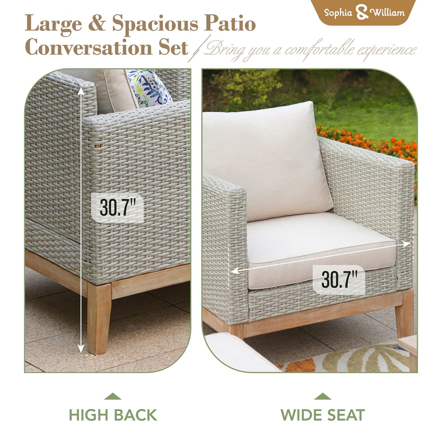 Sophia & William Outdoor Patio Furniture Sets, 5-Piece All-Weather Patio Conversation Set, High Back Wicker Rattan Setional Sofa with Large Single Sofa Chairs, Ottomans & Wooden Coffee Table (Beige)