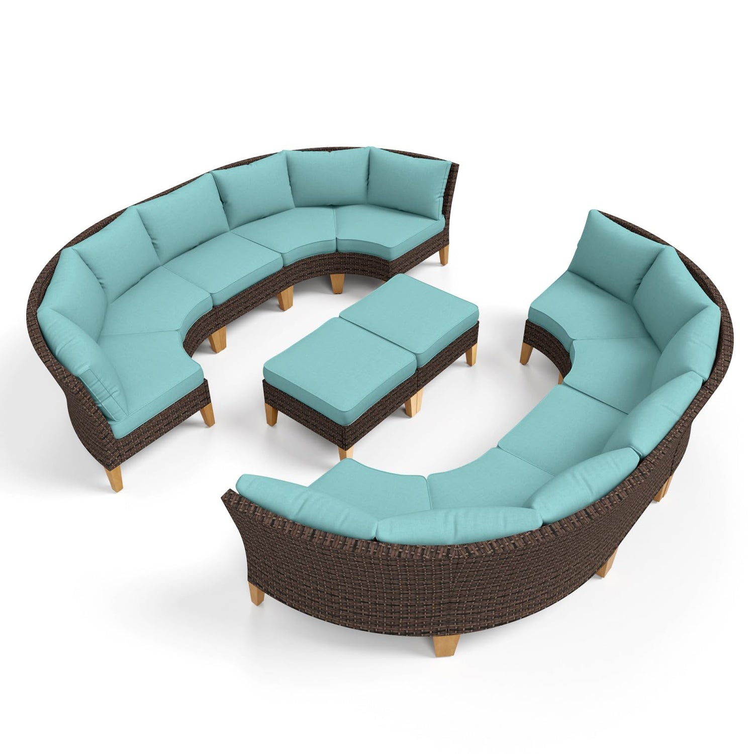 Sophia & William Outdoor Wicker Sectional Sofa Set, 12 Piece Half Moon Curved Patio Furniture Modern Round Outdoor Couch Conversation Set with Ottoman for Backyard, Deck, Garden(Aqua Blue)