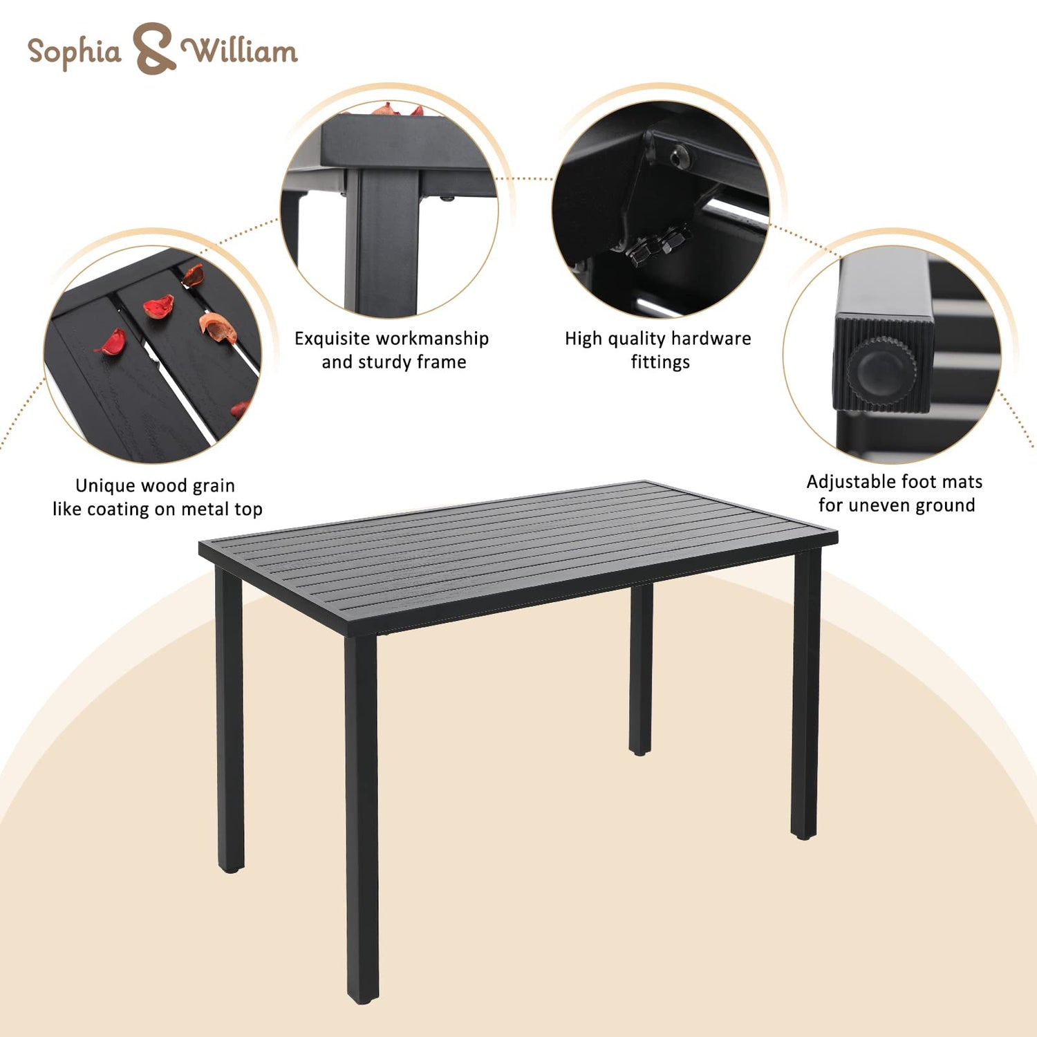 - Easy to Assemble: Our outdoor metal furniture set is easy to assemble with detailed installation manuals and complete accessories. Easy to clean with damp cloth and resistant to dirt and abrasion. Table Dimension: 55.9”L x 29.5”W x37”H, Chairs Dimension: 20”W x 21’’D x 46.5"H, Weight Capacity: 300lbs