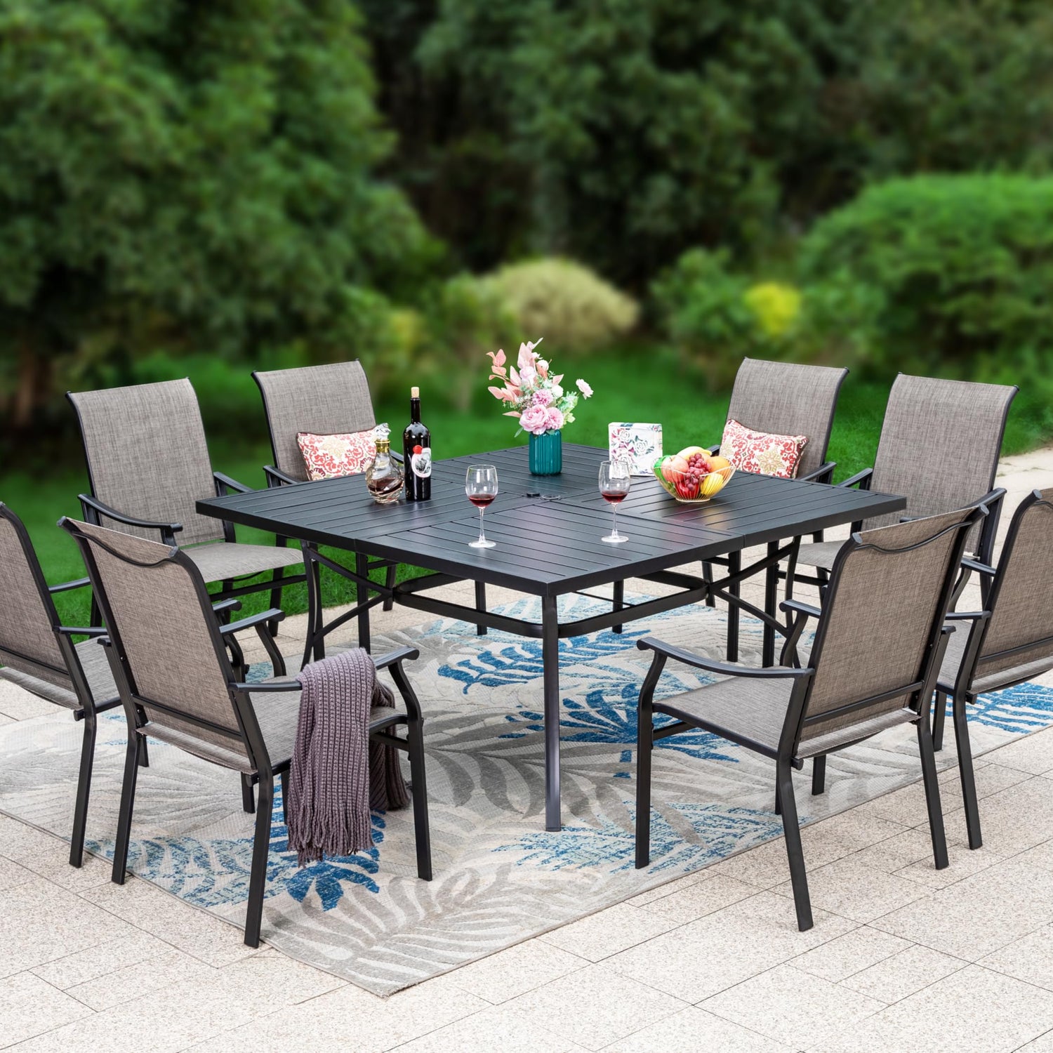 Sophia & William Patio Dining Set 9 Pieces, 8 Quick Dry Textilene Chairs and 1 Large Square Outdoor Dining Table, Durable All-Weather Patio Furniture for Lawn, Park, and Courtyard Support 350lbs