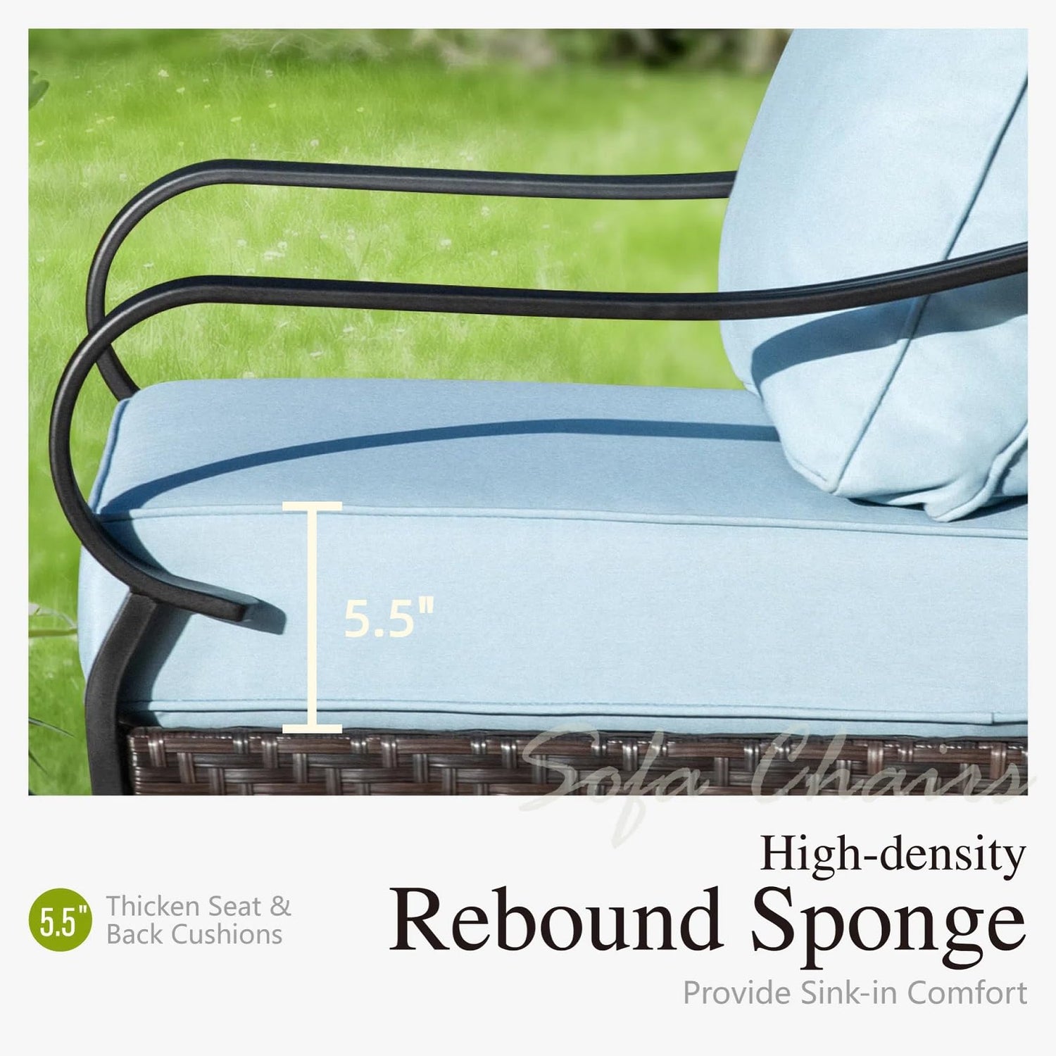 - Ultimate Comfort with Thick Cushions: Featuring 5.5-inch thick cushions, this conversation patio furniture Set ensures maximum comfort and support. The extra-wide, deep seats and high backrest offer a relaxed, cozy experience, perfect for lounging or engaging in long conversations. Enjoy outdoor comfort like never before with this stylish and comfortable set.