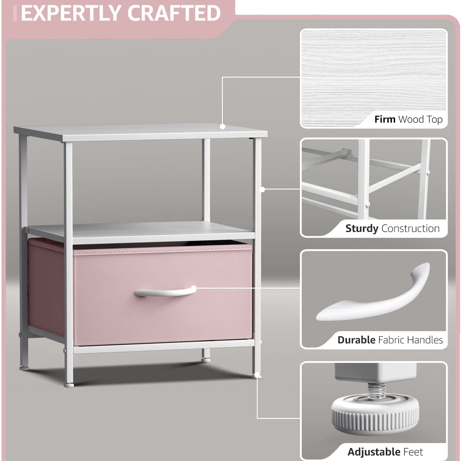 Sorbus 1 Drawer Shelf Storage Nightstand - Kids Bedside Furniture End Table Night Stand with Steel Frame Wood Top & Easy Pull Fabric Bins. Dresser & Chest for Home Bedroom Accessories Office & College