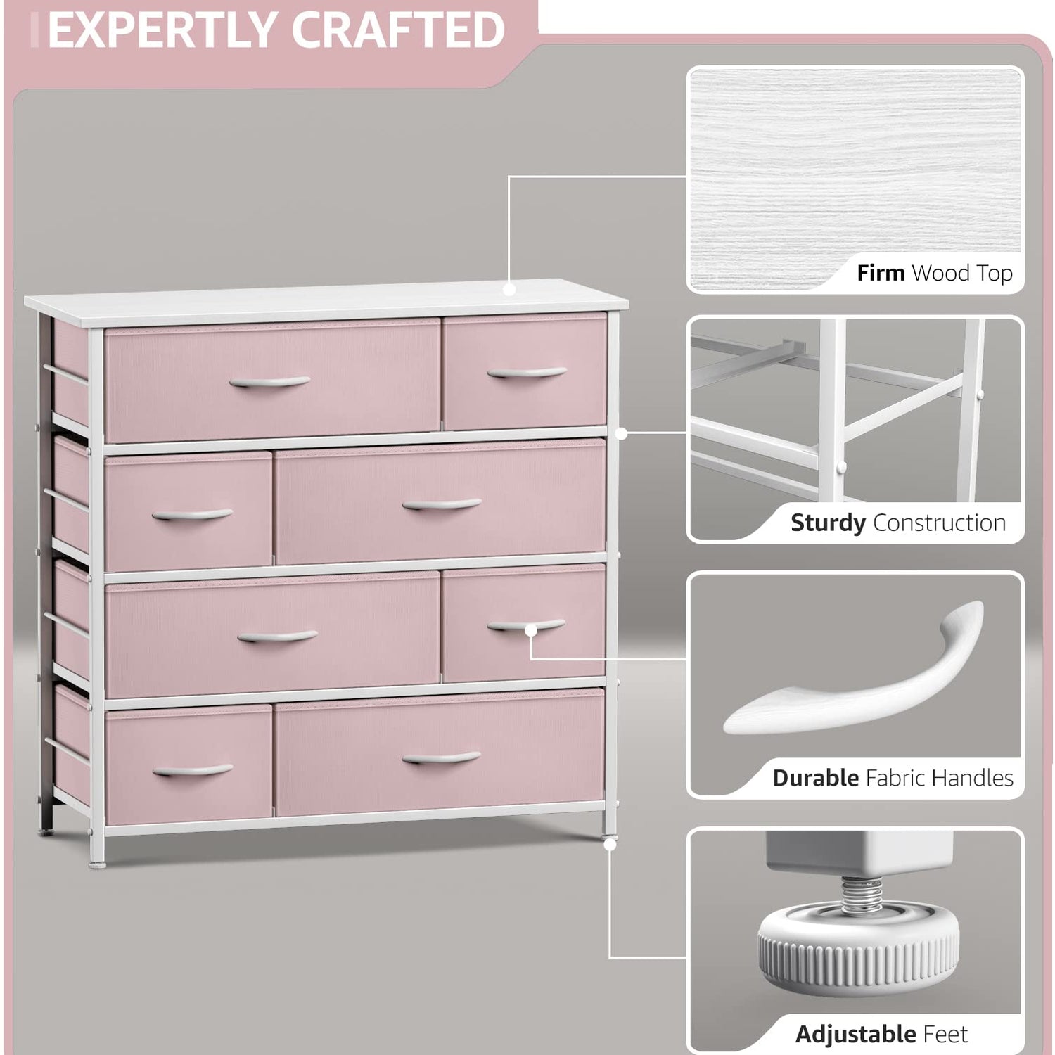 Sorbus Dresser with 8 Drawers - Furniture Storage Chest for Kid’s, Teens, Bedroom, Nursery, Playroom, Clothes, Toys - Steel Frame, Wood Top, Fabric Bins (Pink)