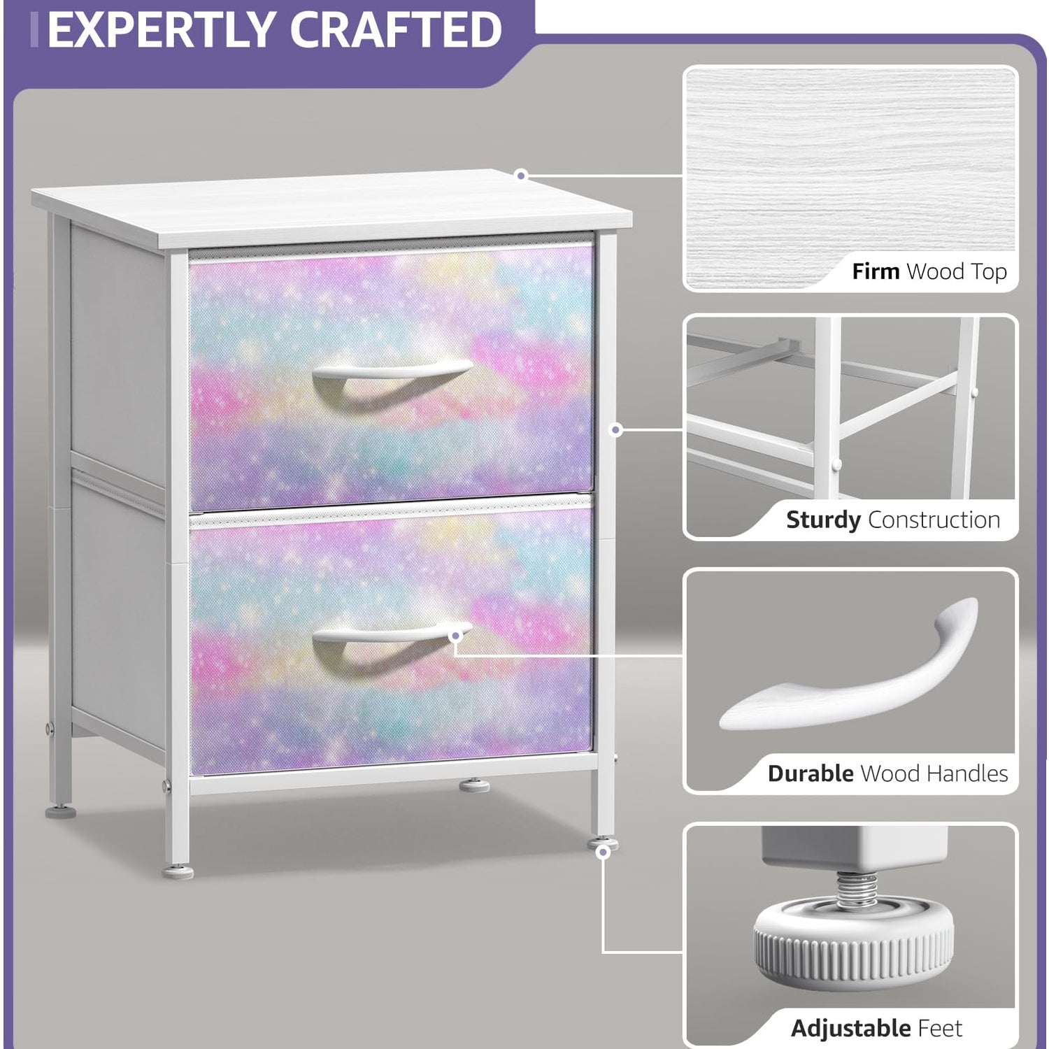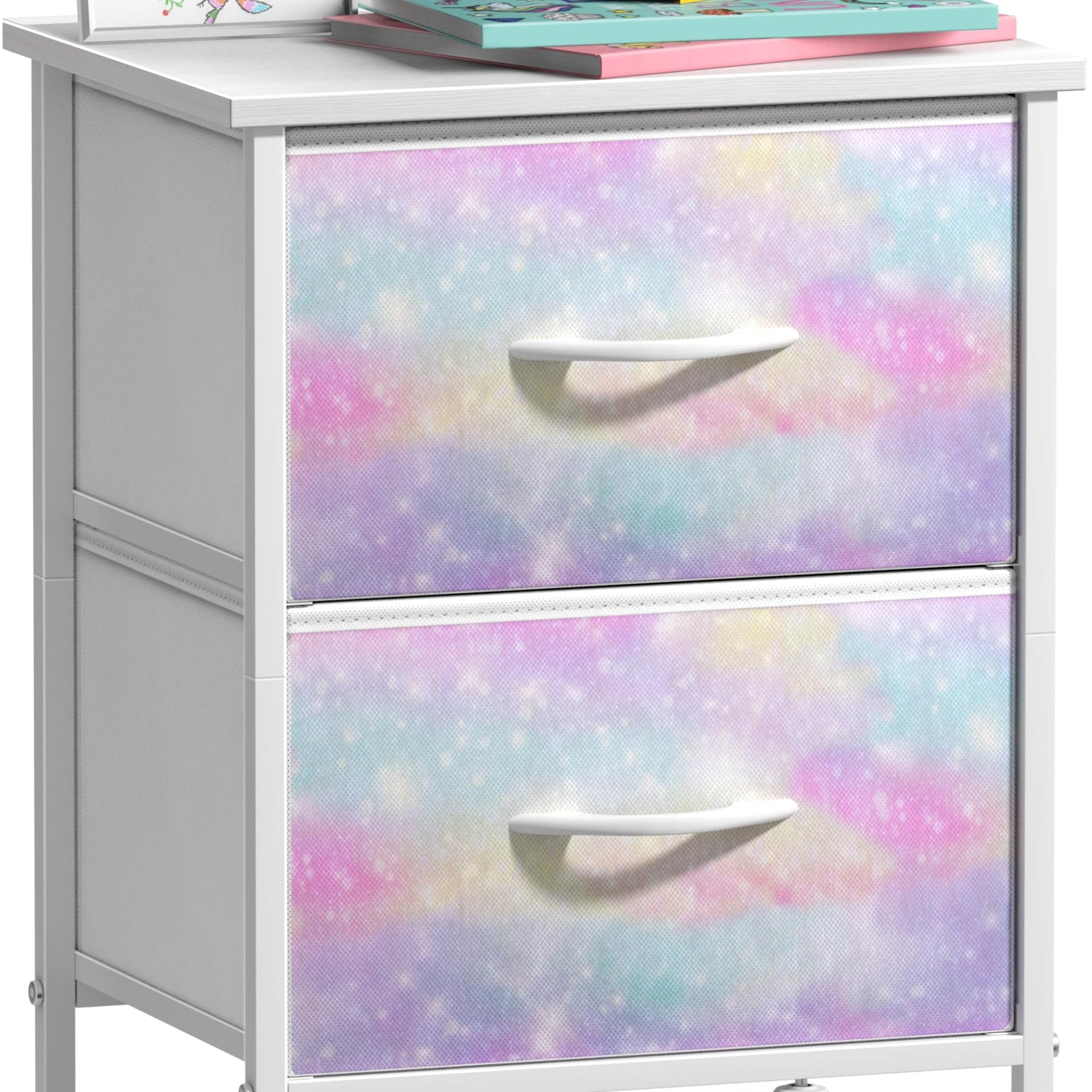 Sorbus Kids Dresser with 2 Drawers - Storage Chest Organizer Nightstand - Steel Frame, Wood Top, Tie-Dye Fabric Bins for Clothes - Wide Furniture for Bedroom, Hallway, Nursery, Closet, & Apartment