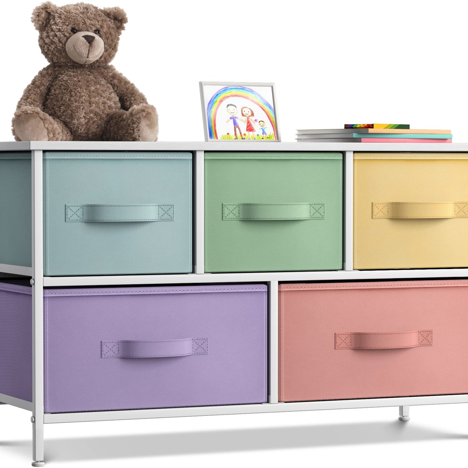 - 5-DRAWER DRESSER (PASTEL MULTI-COLOR) — Style meets function with this dresser chest, complete with a wood surface and colorful storage drawers — Pairs beautifully with the Sorbus Foldable Furniture Collection (sold separately)