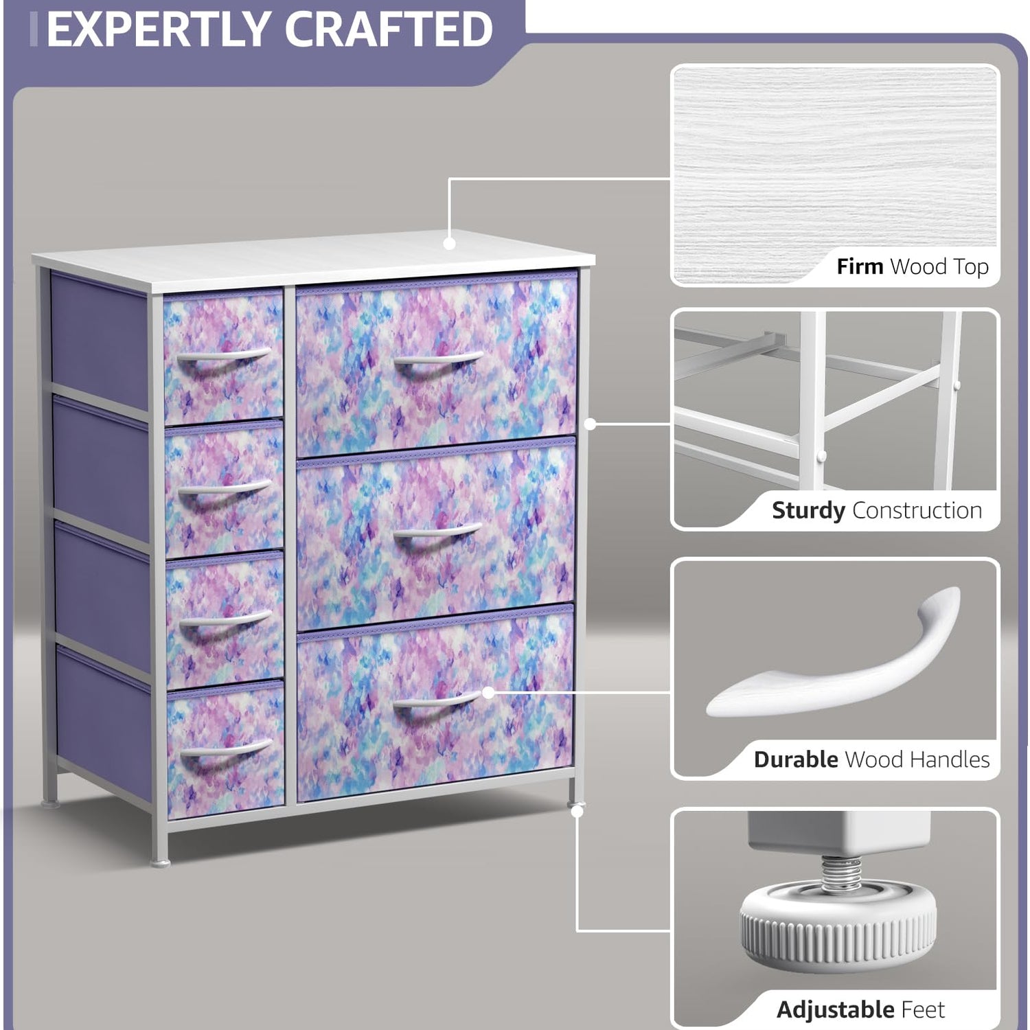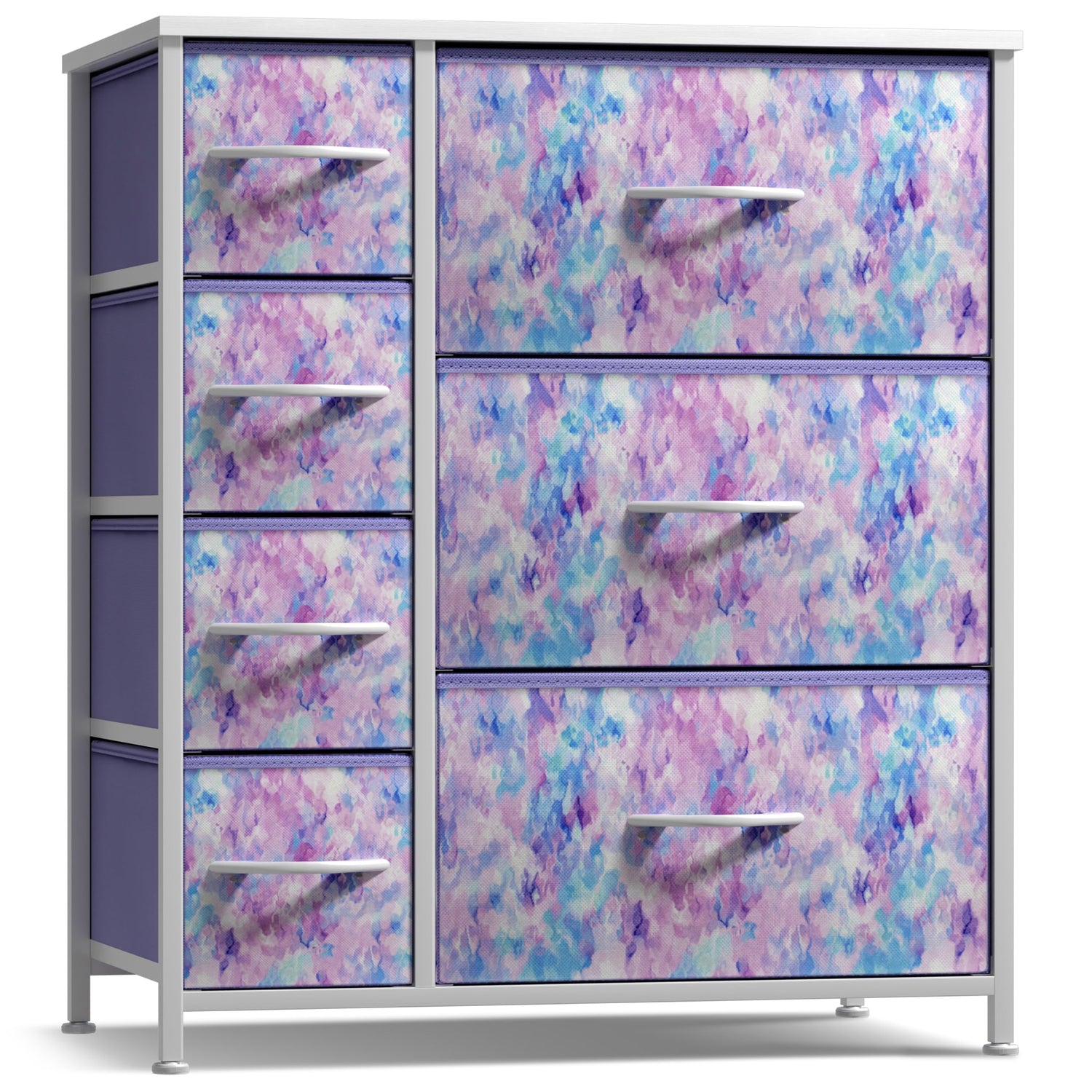 Sorbus Kids Dresser with 7 Drawers - Storage Chest Organizer Unit with Steel Frame, Wood Top & Handles, Tie-dye Fabric Bins for Clothes - Wide Furniture for Bedroom Hallway Kids Room Nursery & Closet
