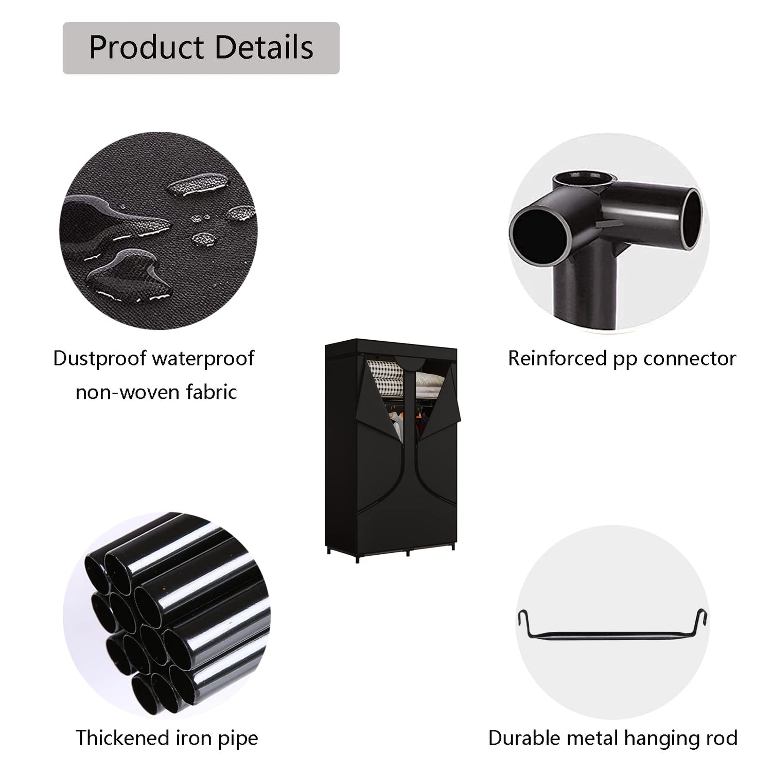 - 【Metal Frame,High Bearing Capacity】Thickened iron pipe,strengthened plastic connector,greatly improve the bearing capacity of the wardrobe,please rest assured to use.