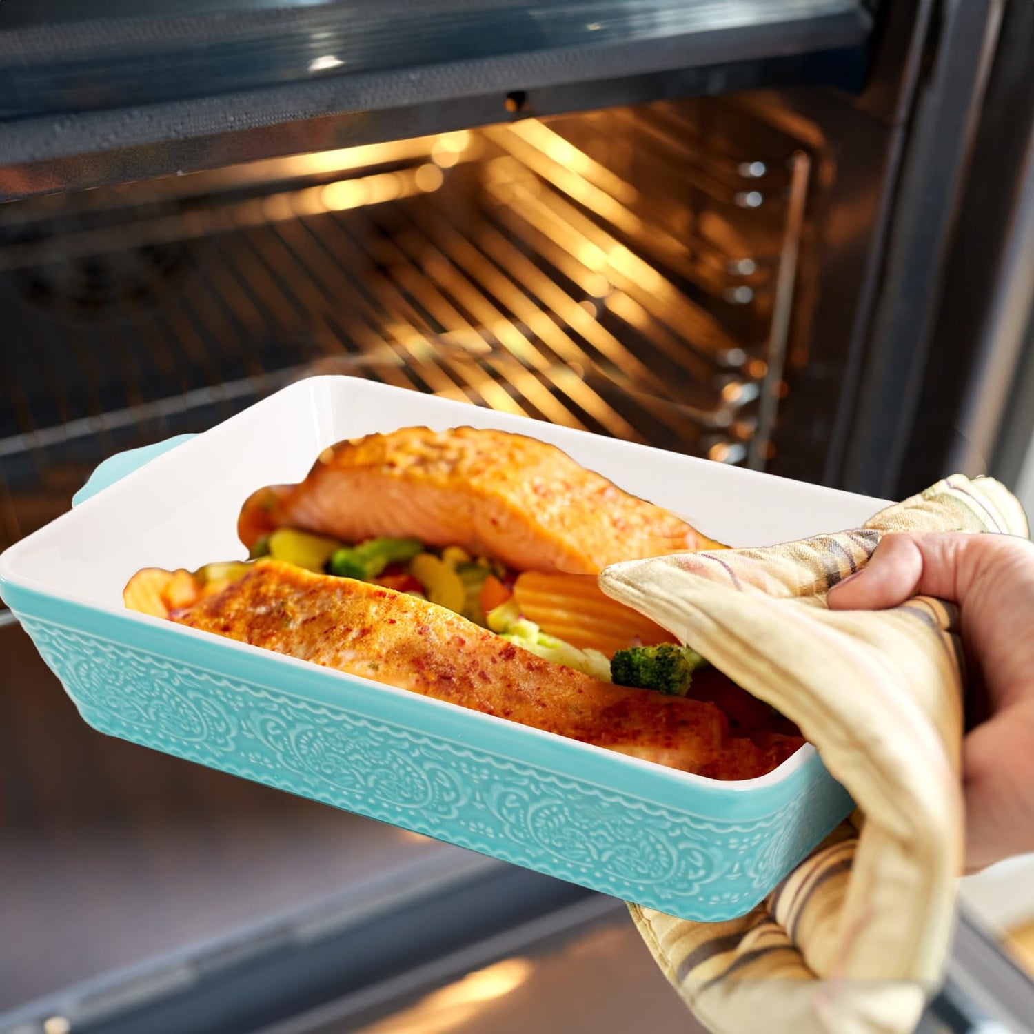 - Embossment Floral Design: The lasagna pan features unique light blue embossment floral, can be a charming decoration in your dining table and kitchen