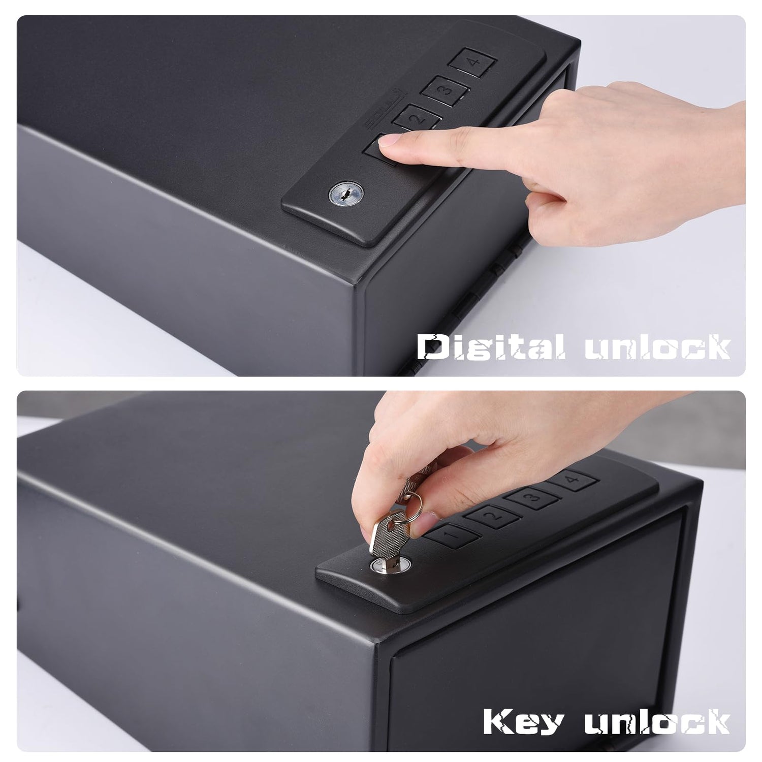 - Easy To Hide: With the compact volume, the safe fits multiple scenes, under table and bed, lateral side of closet, wall, bookshelf, cabinet, which makes it difficult to find, keep it away from children and protect family members
