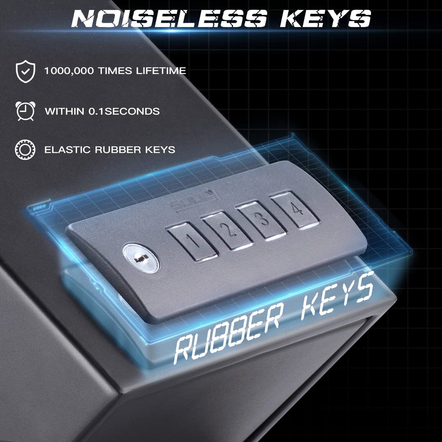 - Digital and Key Quick Access: Rubber Key pad engraved numbers let you have access to your gun, through pop-up door, within one second in dark; The safe also can be opened with emergency keys; It is easy to use, which ensure you saving time, especially in case of emergency; Multi-way access prevents you from forgetting code or without power
