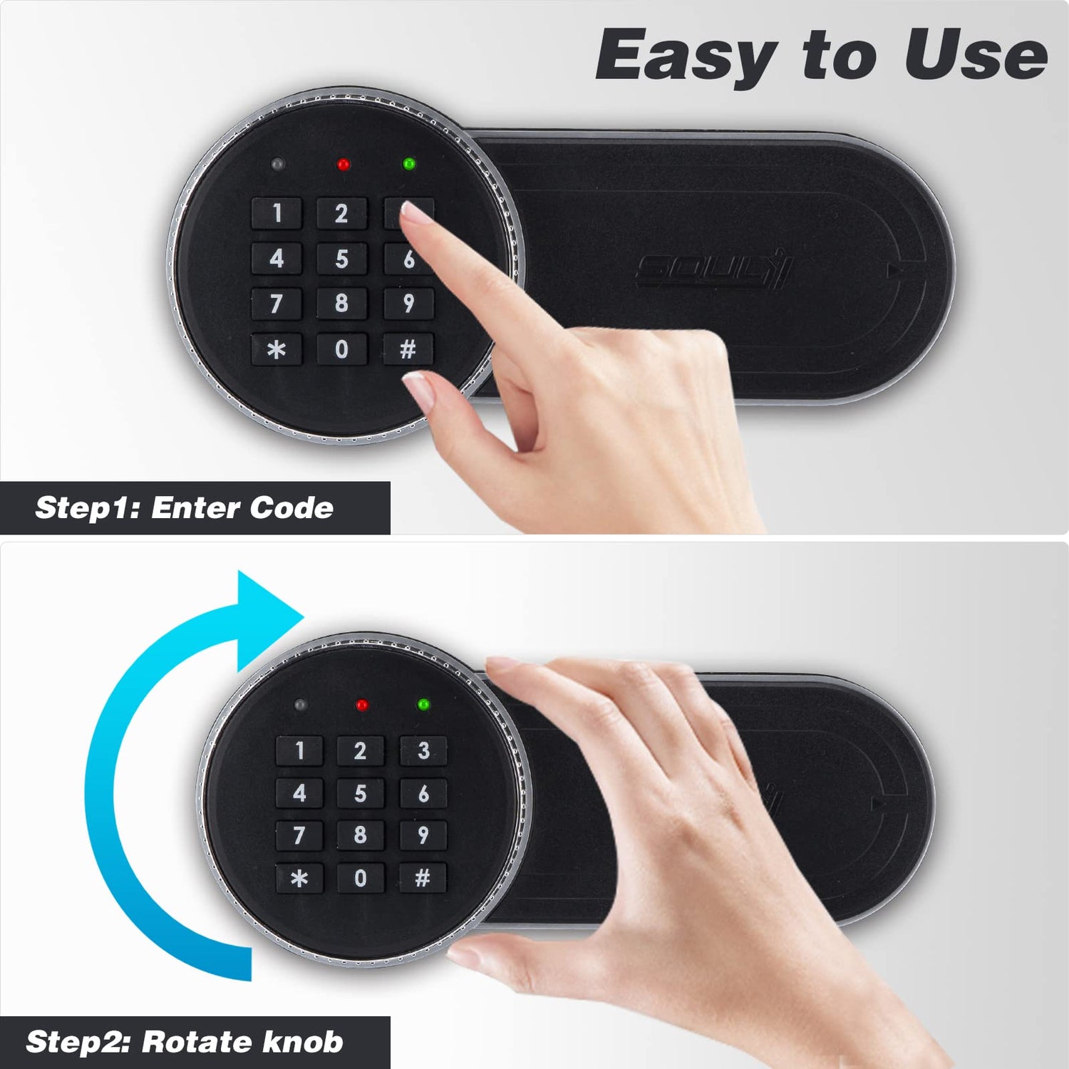 - Easy To Use:The safe is unlocked by entering digital code or backup key and then just opened by rotating the knob; The whole process of opening the box is within two seconds; Resetting the code by pressing the red button ( Internally hidden ); As without cumbersome initial smart settings, the aged can use this home safe easily within a few minutes