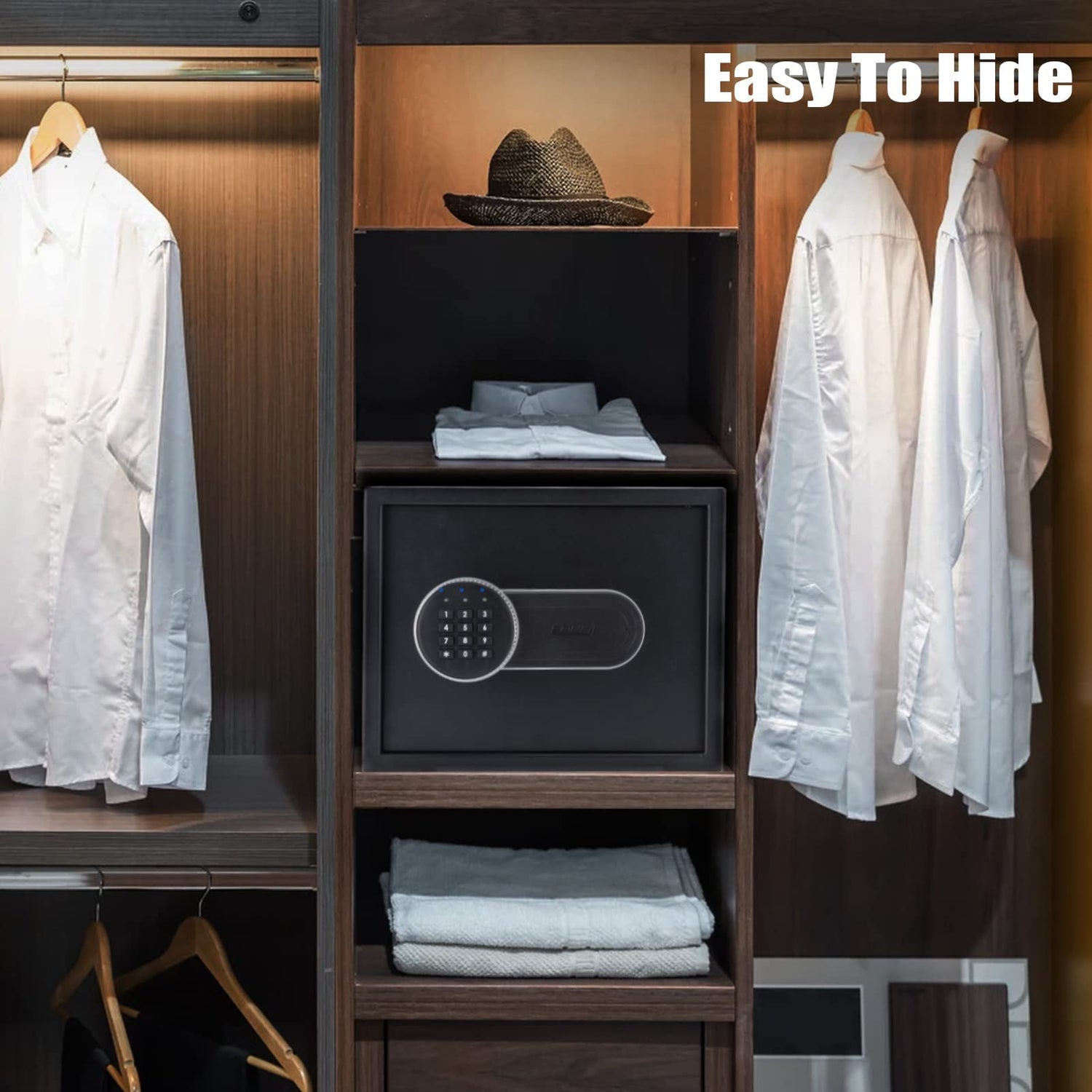 SOULYI Safe Box, 0.5 Cubic Feet Small Safe with Digital Keypad Override Keys, Money Safe Mounted on Wall Floor of Home Office Hotel For Jewelry Document Cash Gun Storage