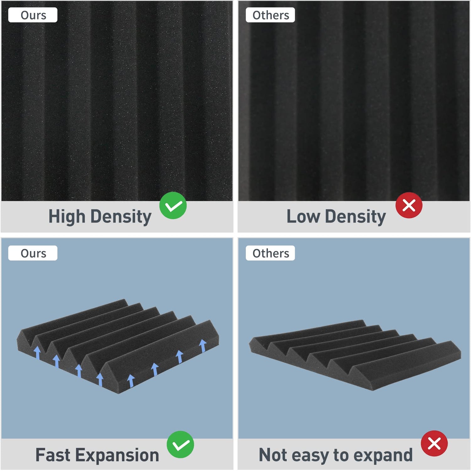 - 【Easy to Expand】High density (25kg/cbm)polyurethane foam material are adopted for our sound panels, so they have extremely high resilience. Most of cases they can expand to full size and shape immediately even they are compressed sealed in package for a long time, sometimes it may take longer, a few hours to 1-3 days.