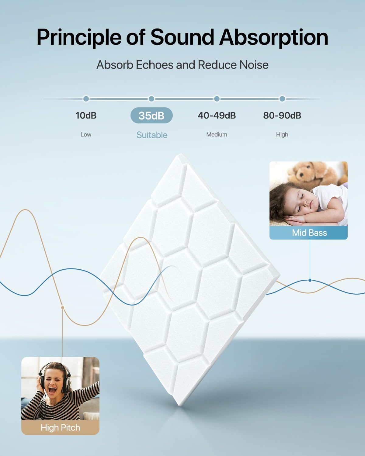 Soundsbay Soundproof Wall Panels, 18 Pack Sound Proof Foam Panels for Walls, Self Adhesive Honeycomb Acoustic Panels, Noise Cancelling Wall Panels for Wall Decorative, Ceiling, Door 12"×12"×0.4"