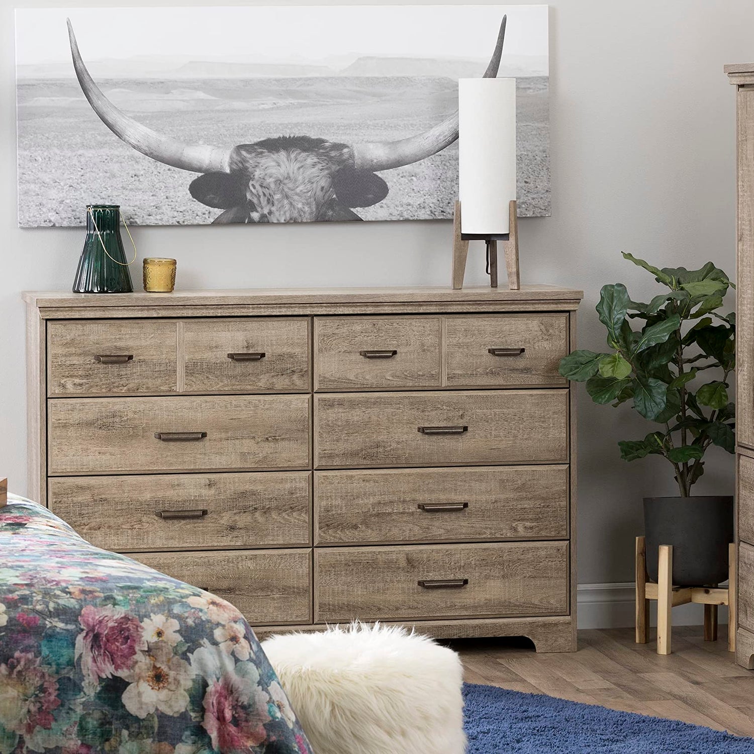South Shore Versa Collection 8-Drawer Double Dresser, Weathered Oak with Antique Handles