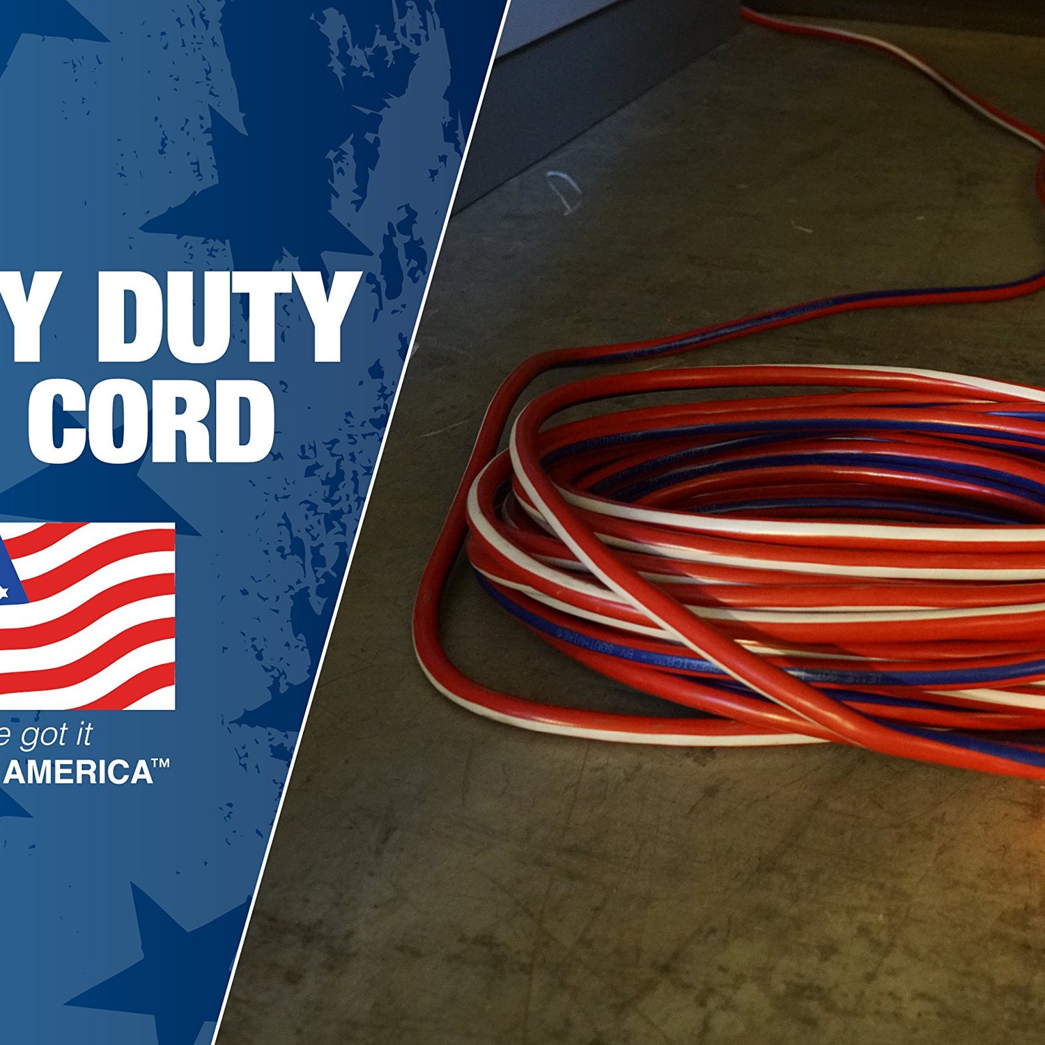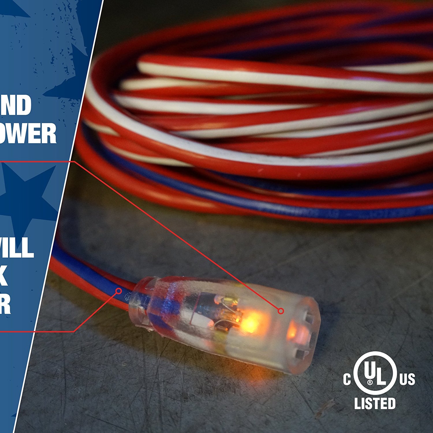 - MADE IN AMERICA : Display AMERICA’S COLORS on the jobsite with this patriotic striped contractor grade extension cord