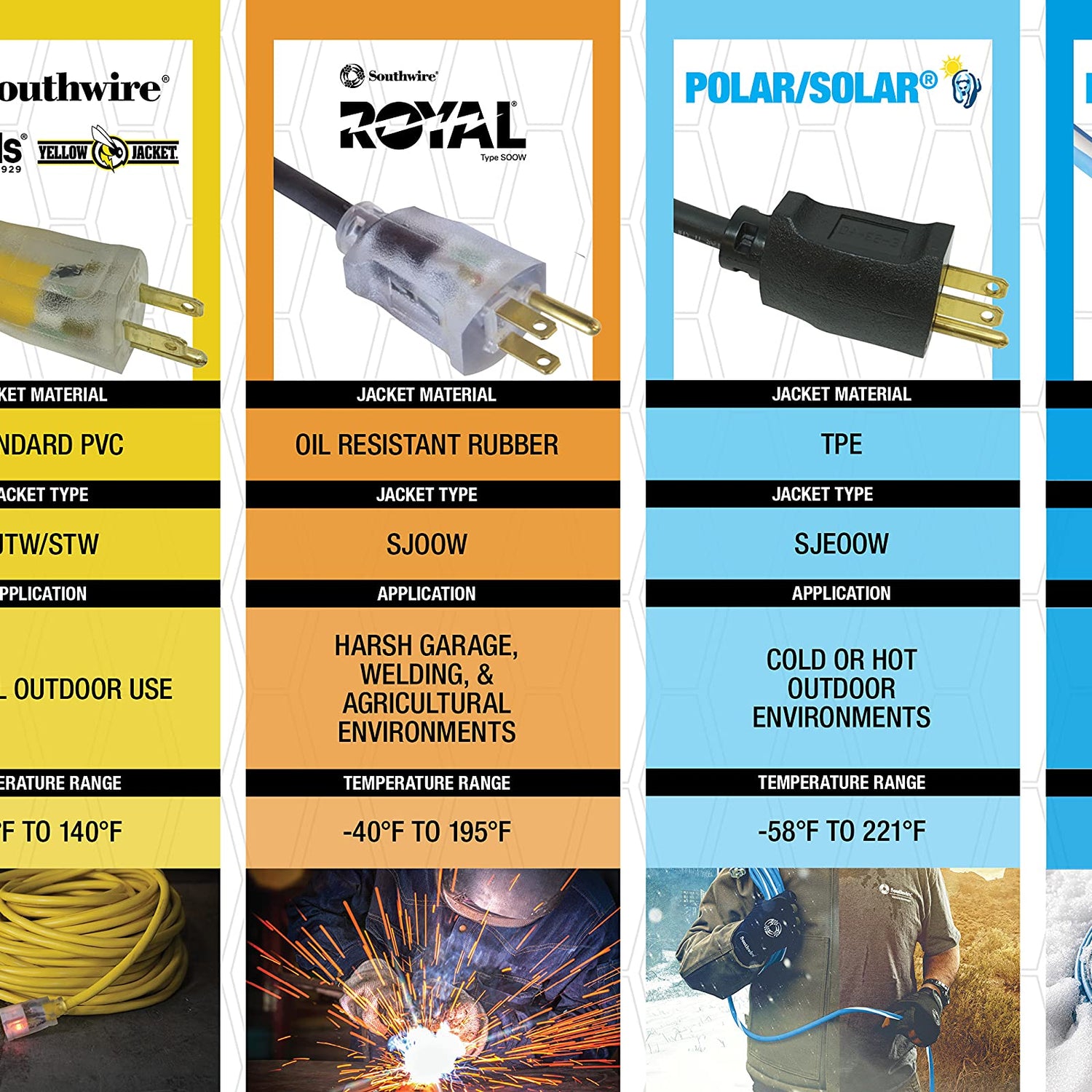 - WATERPROOF flexible vinyl jacket provides protection of the cord against moisture, abrasion, and sunlight