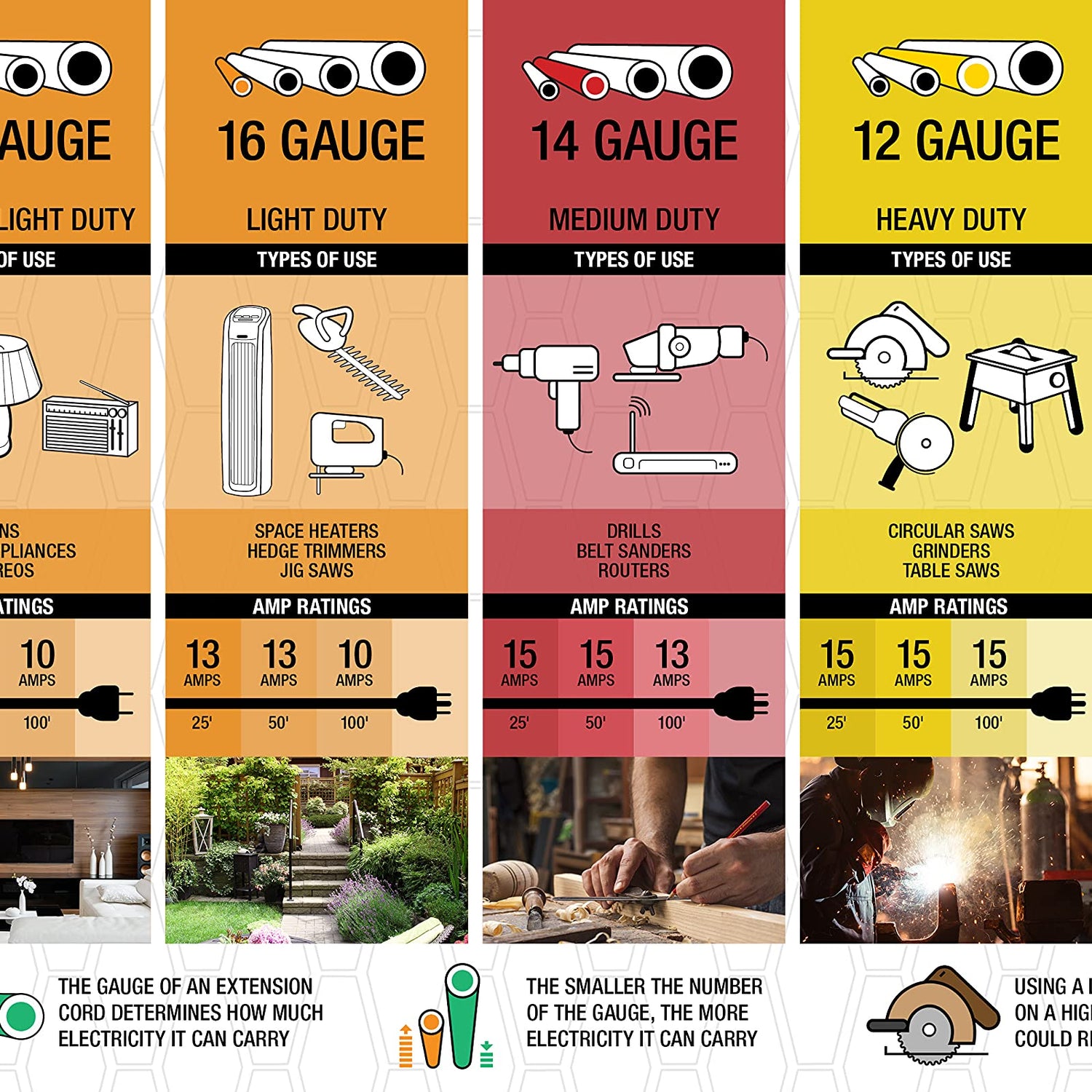 - ALL PURPOSE outdoor extension cord, great for landscaping, and powering appliances such as a shop vac, weed wacker, bush trimmer and leaf blower