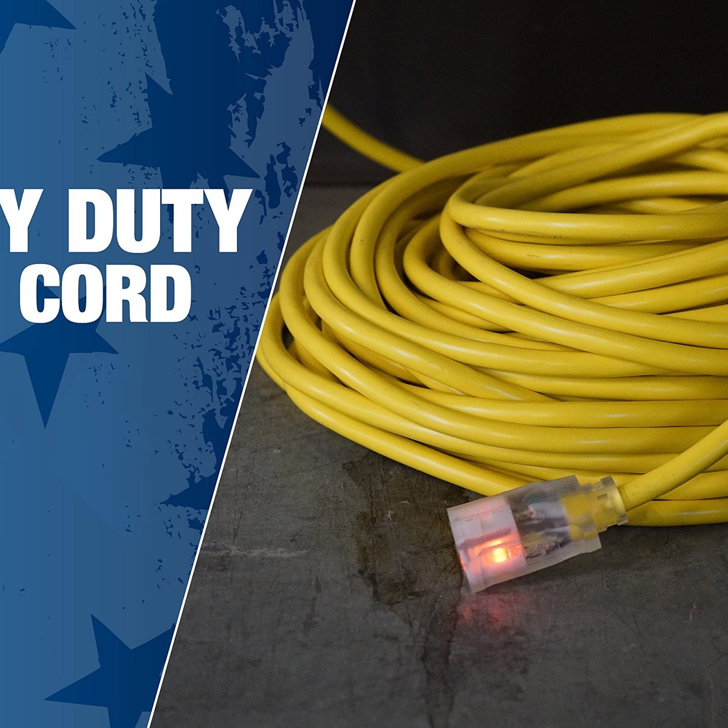 Southwire Outdoor Extension Cord, 100 Ft, 12 gauge 3 prong, Heavy Duty, SJTW Cord, Yellow, 2589
