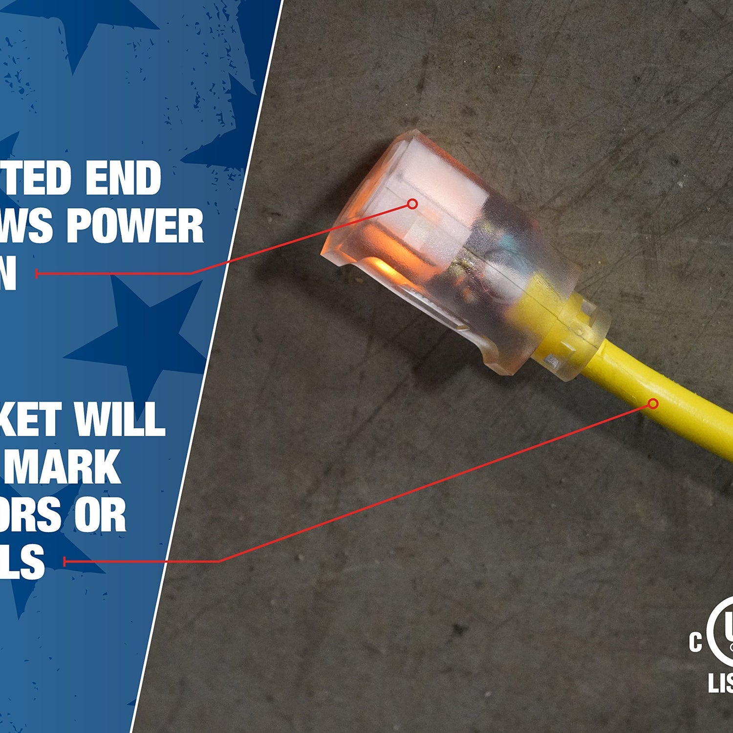 - LIGHTED END indicates power is on12 GAUGE HEAVY DUTY wire; 100 foot; 15 amp; 1875 wattsUL Listed
