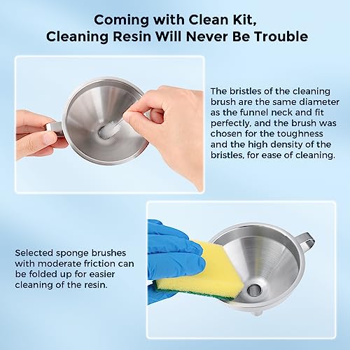 - The funnel is made of stainless steel, easy to use and clean, and effectively filters the contaminants while the resin is poured into the bottle