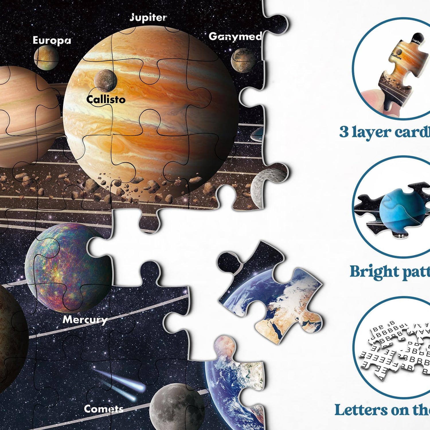 - Fantastic Space Puzzle: From this solar system picture, we can see eight planets revolving around the hot sun in their respective orbits, such as Venus, Mercury and Mars and other planets. Not only can you see the clear and obvious asteroid belt between Jupiter and Saturn, but you can also see small satellites and beautiful galaxy visible to the naked eye. Let's immerse ourselves in the space of the solar system