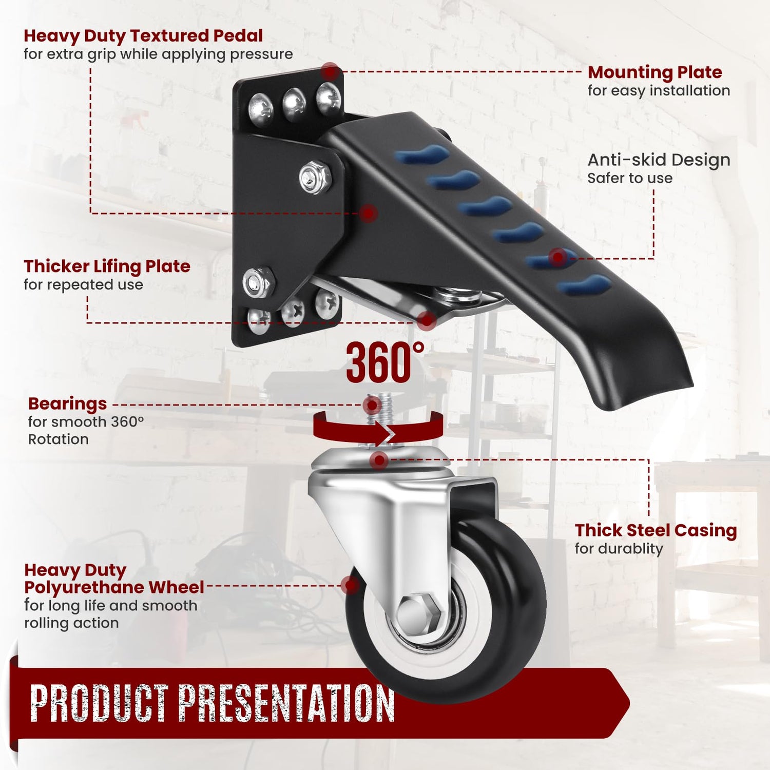 - 【Complete Equipment】- The workbench retractable casters include four 2-1/2" swivel urethane casters, 24 mounting screws, 4 mountingbolts 1 wrench and a full instruction. The quick and easy installation lays the foundation for your moving object.
