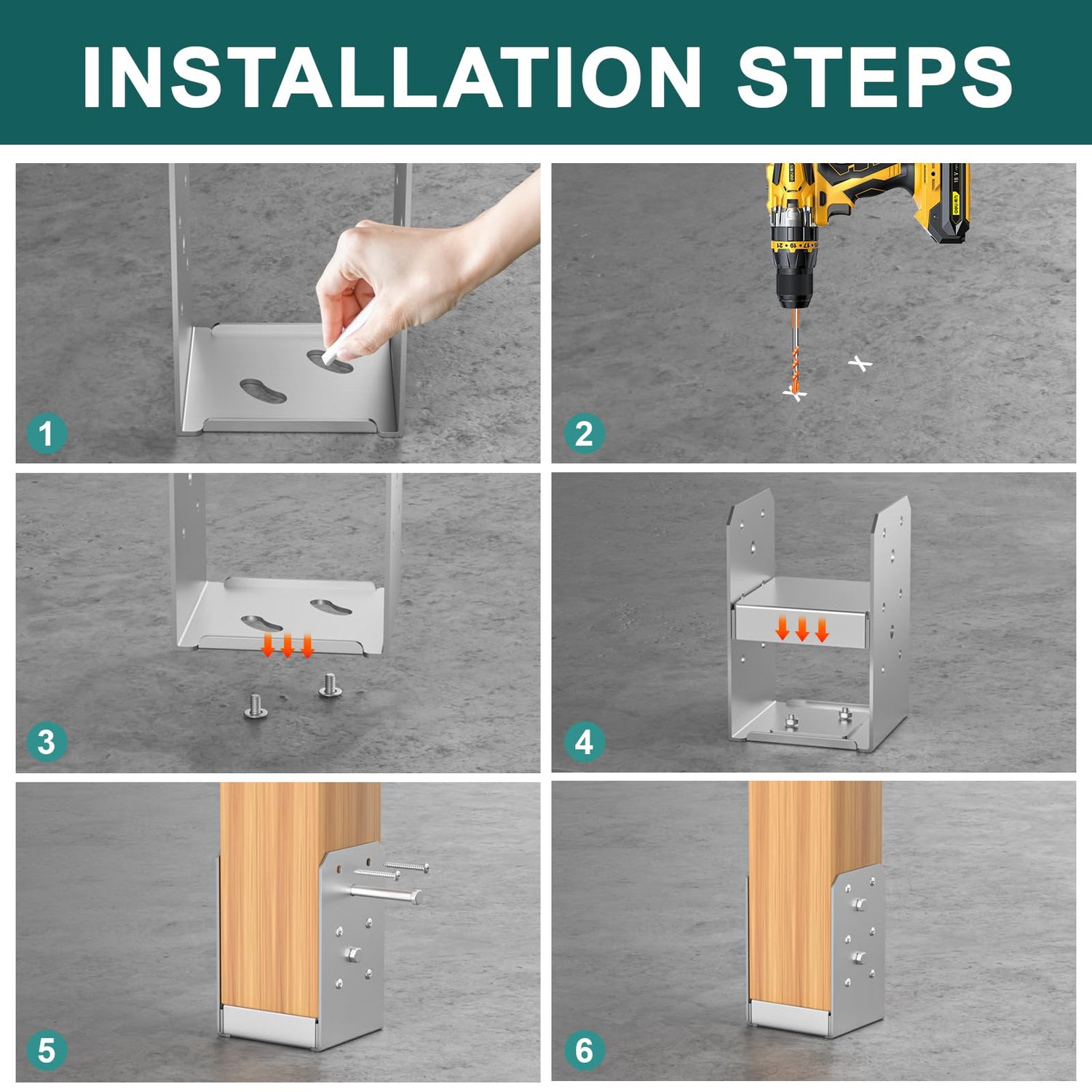 - EASY TO INSTALL: After confirming the size of the wood post, just need to fix the bolts and self-tapping screws. There are more pre-installed holes on the surface of our base, which helps people fix the wooden post firmly and stably. Please confirm the size of the wooden post before you buy it.