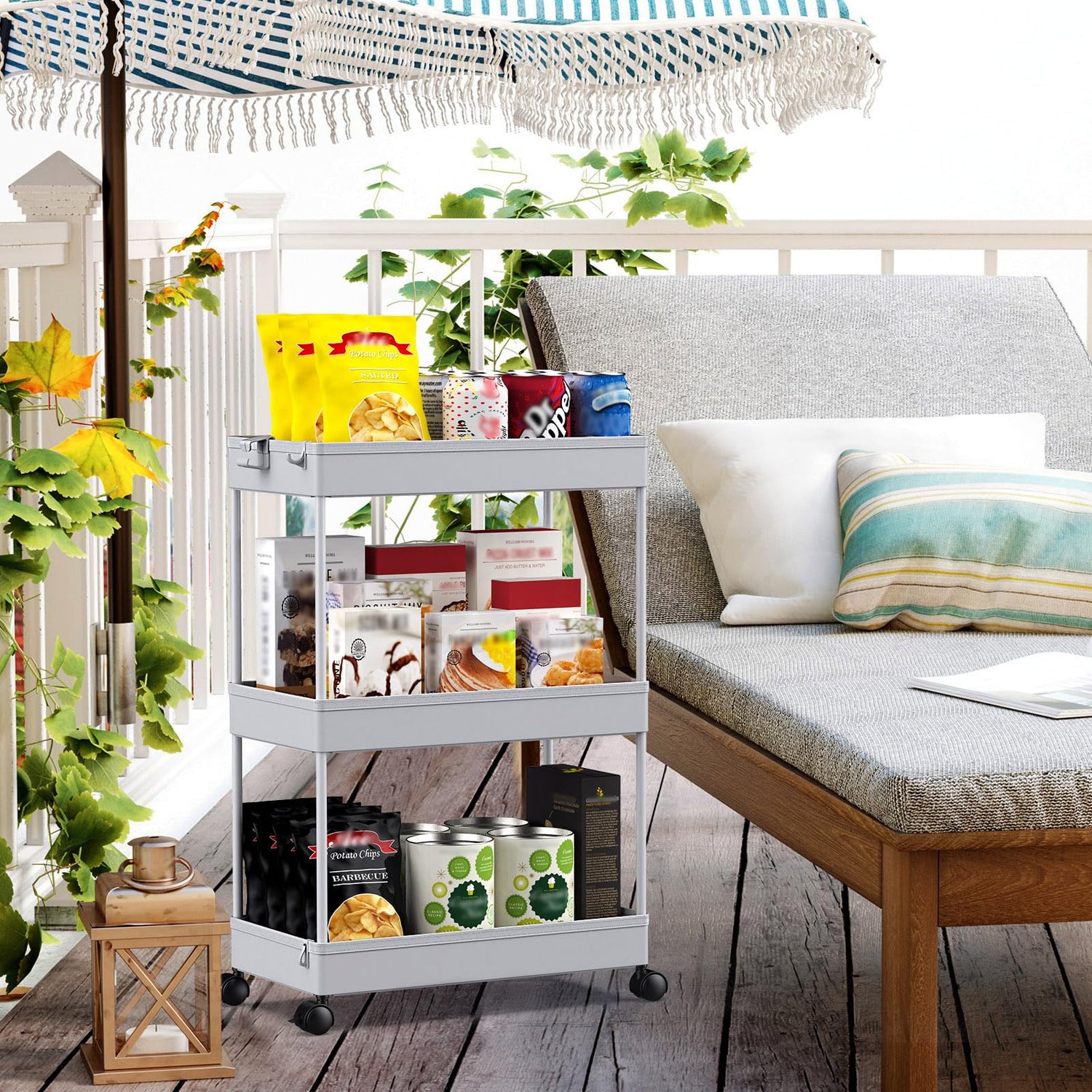 - 【Flexible Storage Cart】- The 3-tier Rolling storage utility cart is 8.66 in design which can be used in tight spaces in your home for storage. Suitable for closets, kitchens, bathrooms, garages, laundry rooms, offices.