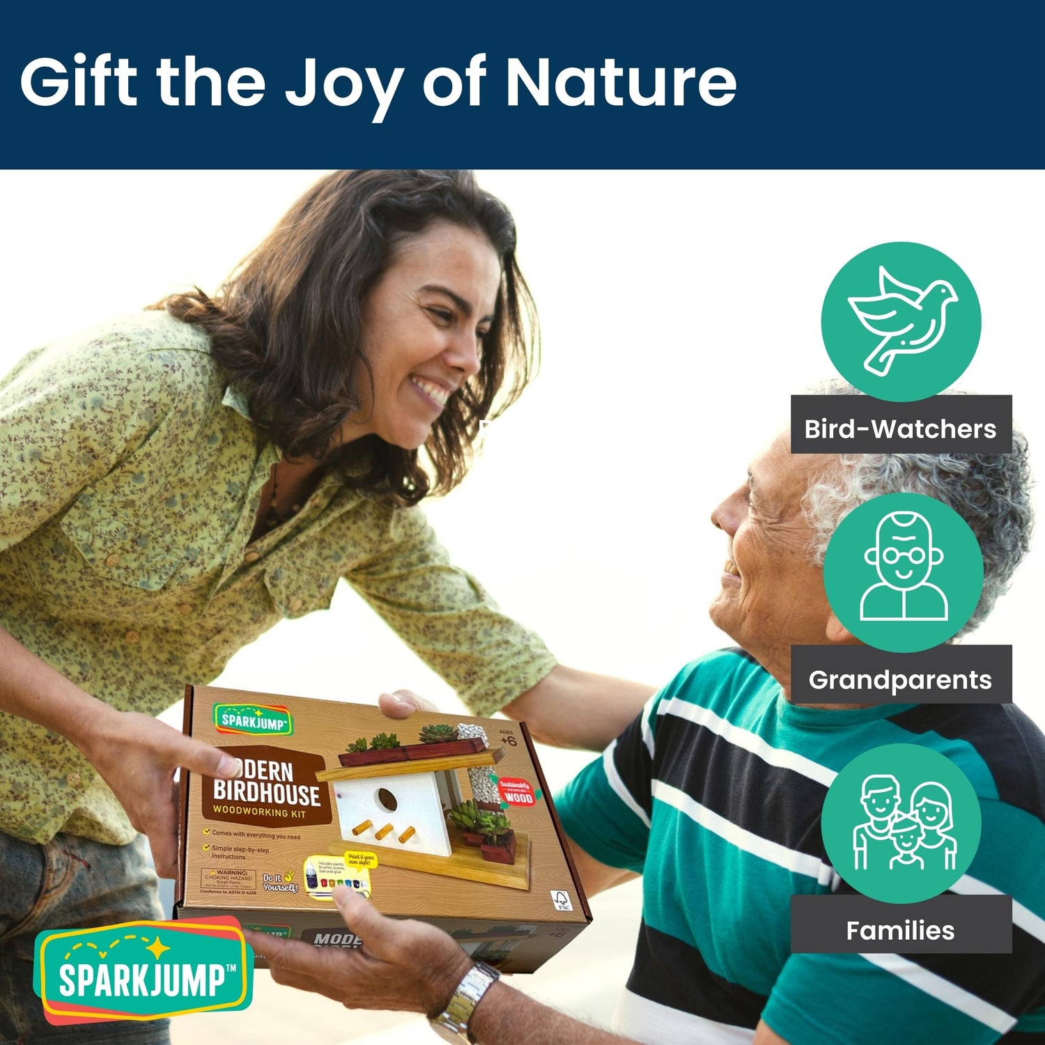 SparkJump Modern Birdhouse Woodworking Kit, Complete DIY Birdhouse for Kids & Adults, Build Your Own Birdhouse Kit for Creative Woodworking Crafts