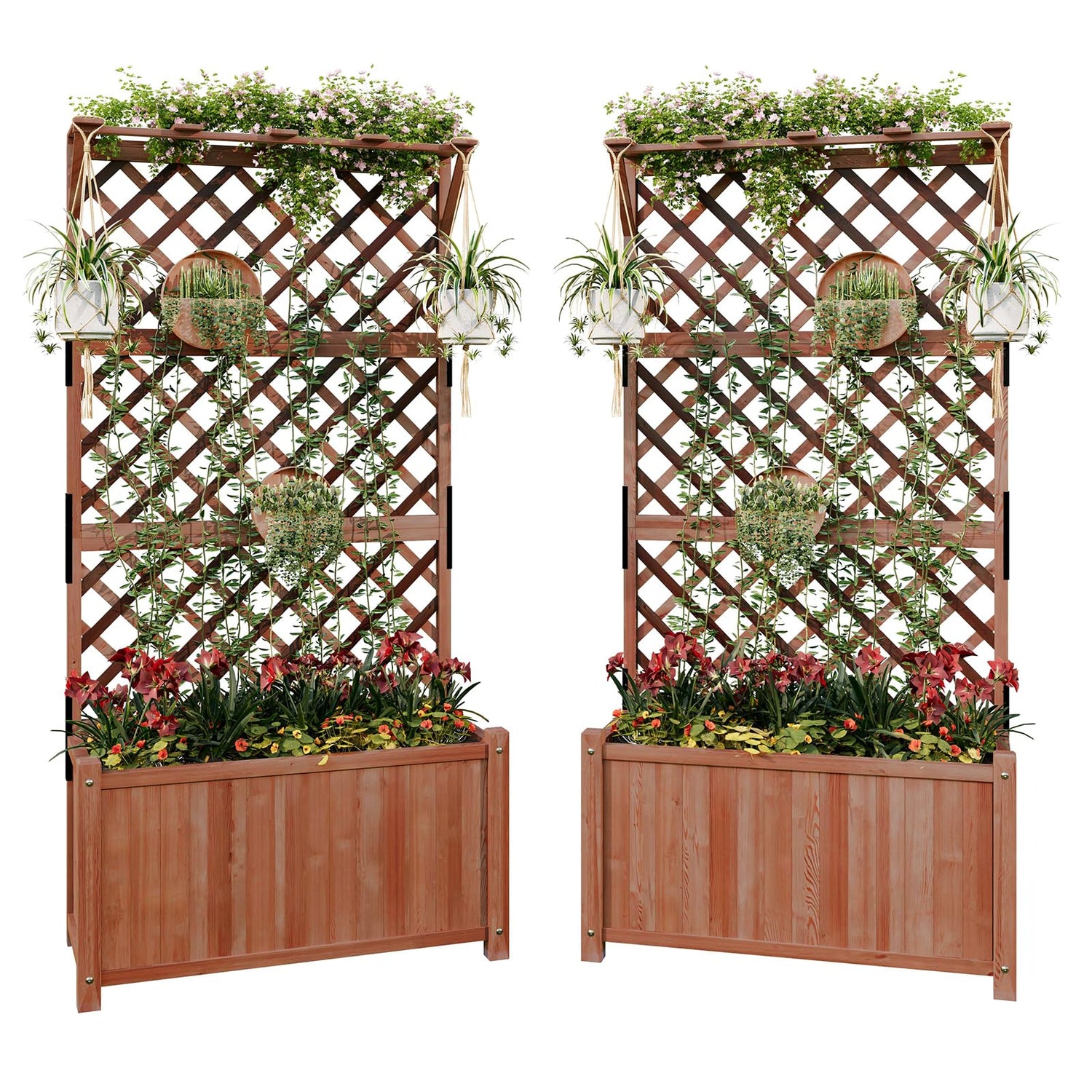 SPECRAFT 2 Pack Wood Planter with Trellis, 35.4x17.7x72 Inch Raised Garden Bed, 1.6Ft Deep Large Planter Box for Outdoor Gardening, Vegetables, and Climbing Plants