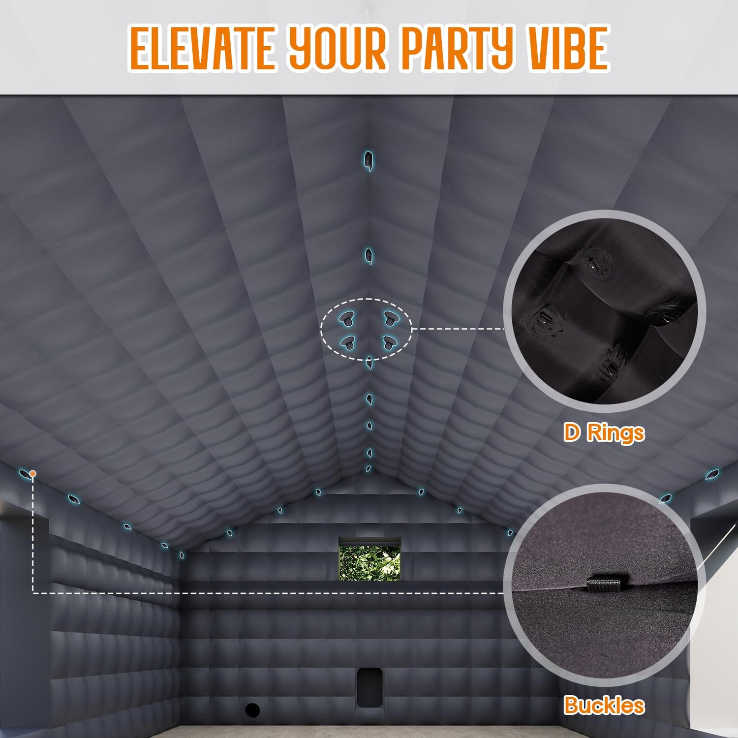 - 【Party Atmosphere Makers】 Equipped with 4 D-rings on the top and edge fasteners, the Inflatable Nightclub Gazebo allows for the hanging of various lights, creating a vibrant and atmospheric setting.