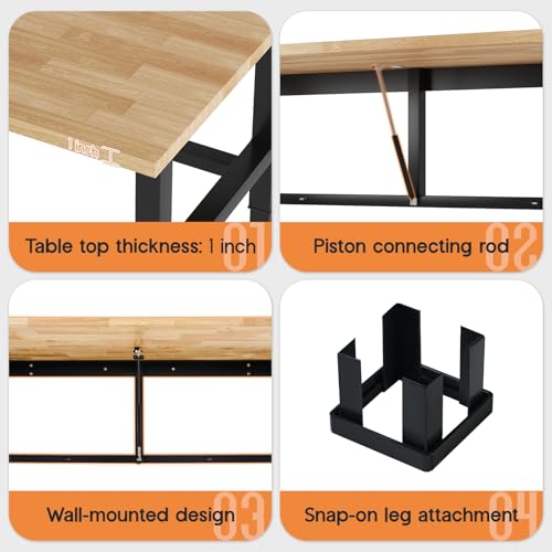 - Space-Saving Foldable Design: Foldable tabletop saves space and is easy to store or move. Wall-mounted design is suitable for for garages, workshops, and small spaces