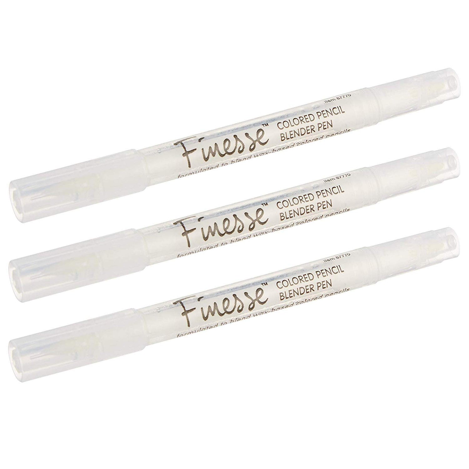Details: The finesse blender is a colorless, solvent-based blender that will Unify, soften and blend all wax-based colored pencils. The double-tip applicator offers both bold and fine tip use. Have several on-hand for use with your favorite color blends.