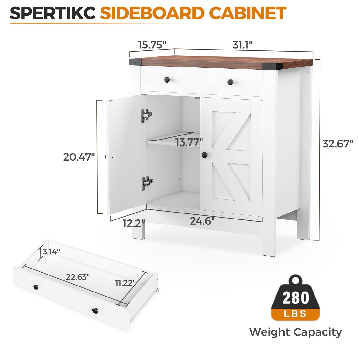 SPERTIKC Coffee Bar Cabinet, Farmhouse Sideboard Buffet Cabinet with Storage, White Kitchen Storage Cabinets with Large Drawer,2 Doors, Adjustable Shelves for Dining Room,Living Room