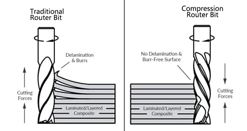 - COMPRESSION CUT. The compression cutters are designed with both up and down-cut flutes, combatting delamination on the top and bottom of a workpiece