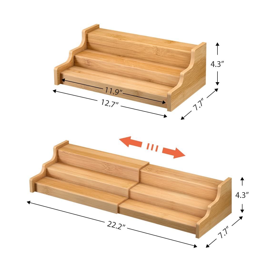 - Adjustable Cabinet Organizer: Expand the wooden spice rack to the size that fits your space and needs, size 12.70”~22.20”L * 7.70”W * 4.30”H
