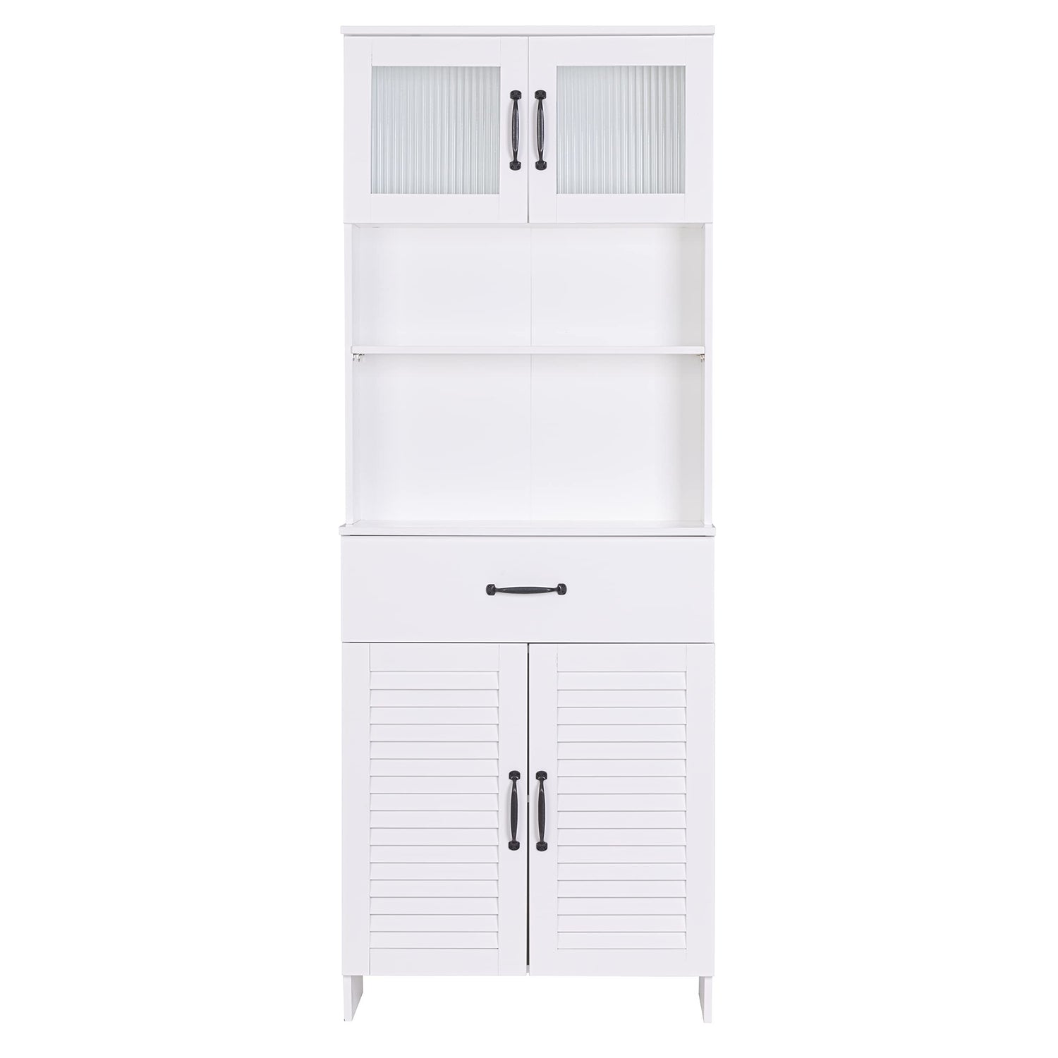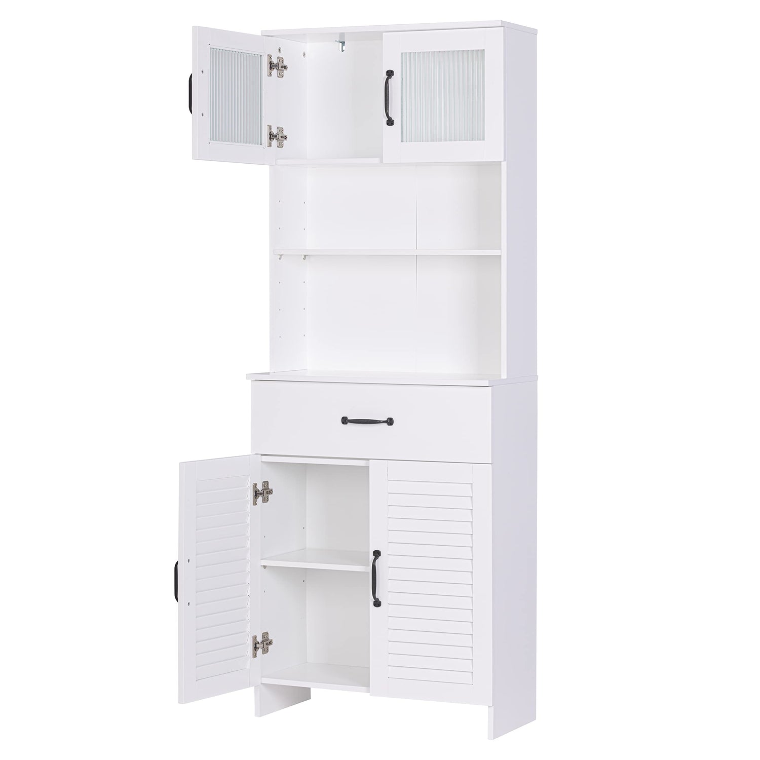 Spirich Tall Bathroom Storage Cabinet, Floor Storage Cabinet with Double Doors and Drawers, Freestanding Wood Cabinet for Bathroom, Living Room, Kitchen, Whtie