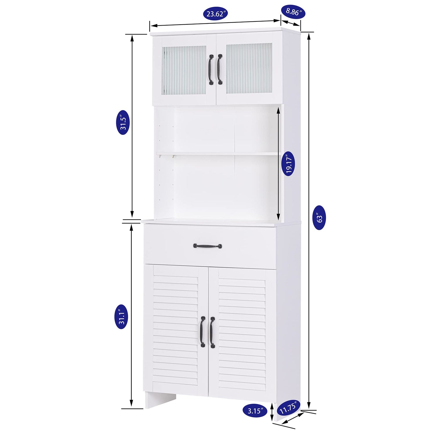 - Large Storage Capacity Cabinet: The linen storage cabinet with an overall size of 23.62"(W) x 11.75"(D) x 63"(H), can organizes everything you need. The top and bottom cabinets and large drawers can store your privacy items, while the middle shelf can store or display the items you need on a daily basis.