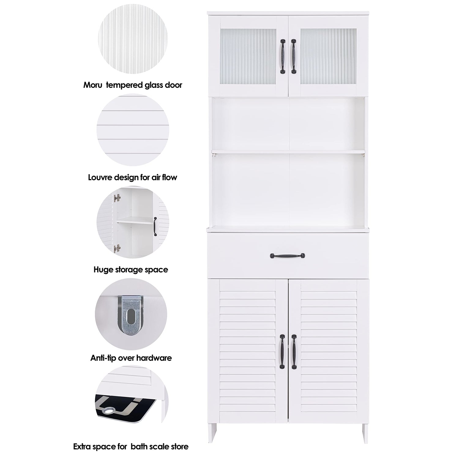 - High-quality Tall Linen Cabinet: Made of high-quality wood, sturdy and durable, the surface is painted, smooth and wear-resistant, in addition, we have added an anti-tilting device to fully stabilize the cabinet.
