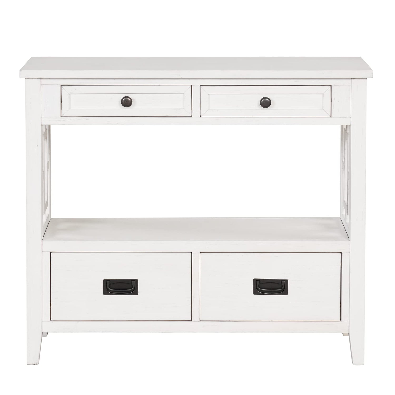 SPOFLYINN 36 Inch Farmhouse Console Table with 4 Drawers 1 Storage Shelf Pine Wood Entryway Table for Living Room Bedroom Hallway Kitchen White One Size
