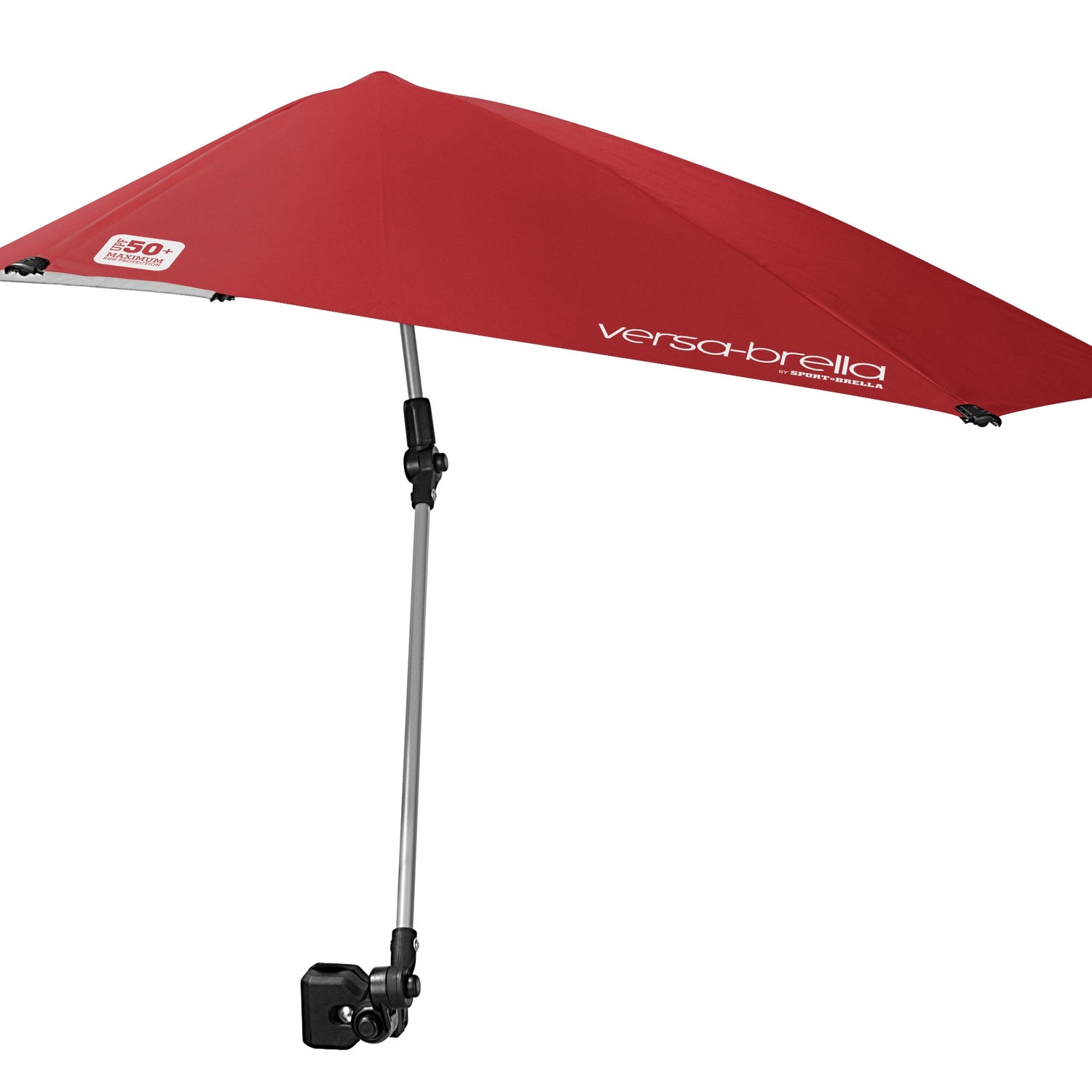 - STAY SHADED ANYWHERE: The Versa-Brella features a heavy-duty clamp that opens up to 1.5 inches, allowing it to securely attach to various tubular and squared surfaces on chairs, wagons, strollers, golf carts, and more