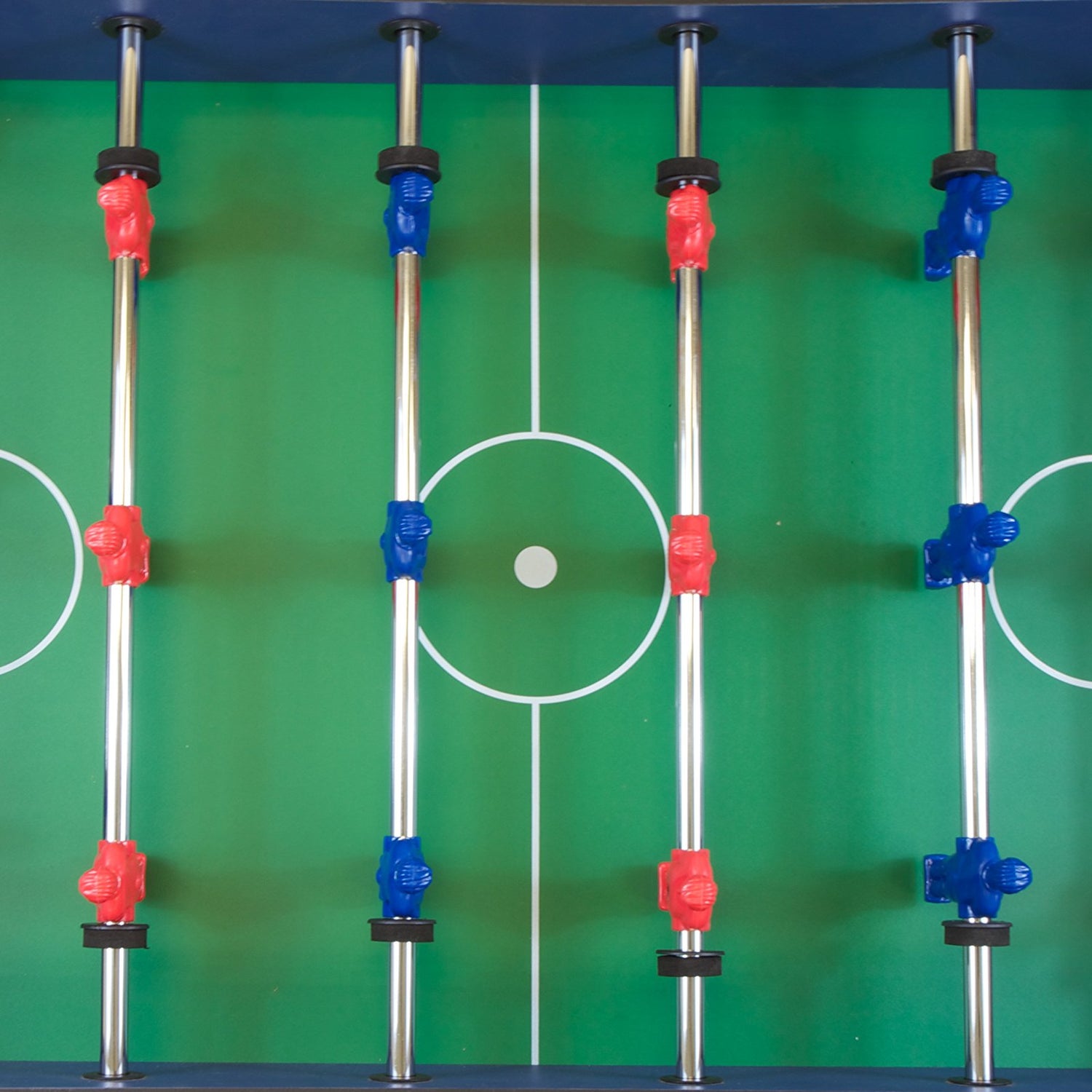 - FOOSBALL PLAYERS ARE PRE-ASSEMBLED ON THE RODS FOR FASTER TABLE ASSEMBLY: This classic version of table soccer is fun for all ages. Chrome-plated steel rods are ideal for swift shots while the rubber grooved handles enable a strong, stable grip.