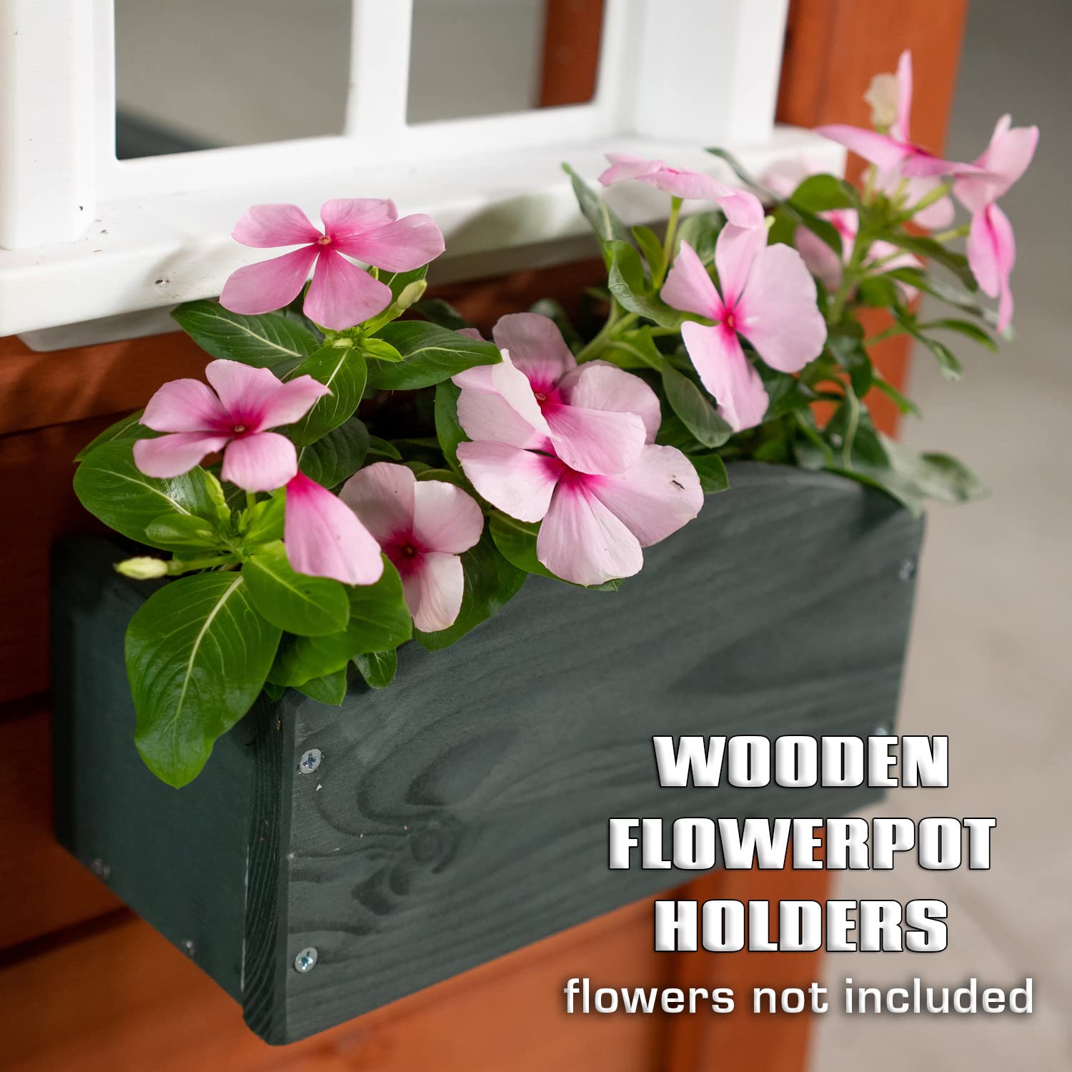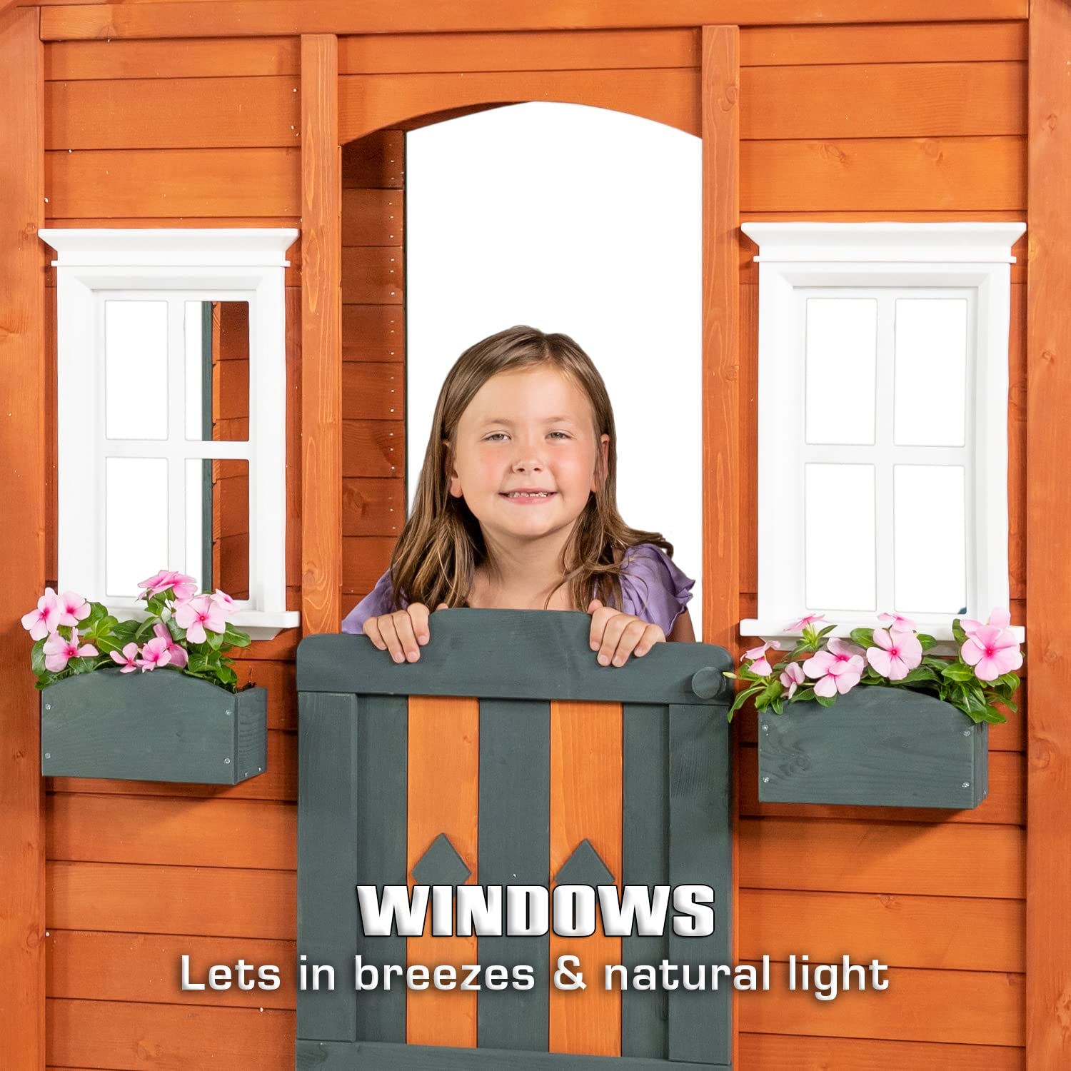 - MODERN and ATTRACTIVE APPEARANCE: Red wooden playhouse featuring white trimmed windows and flower boxes (flowers not included)