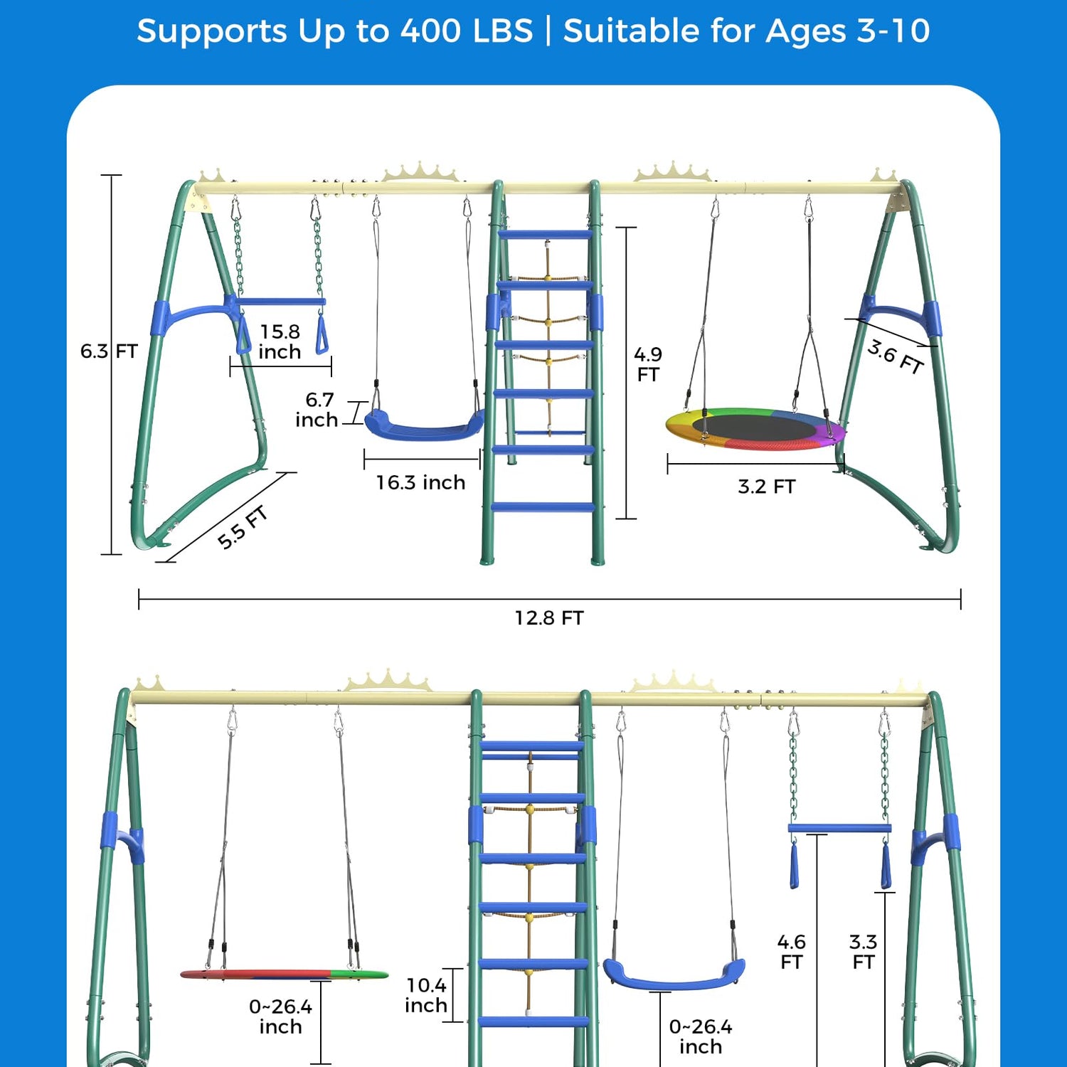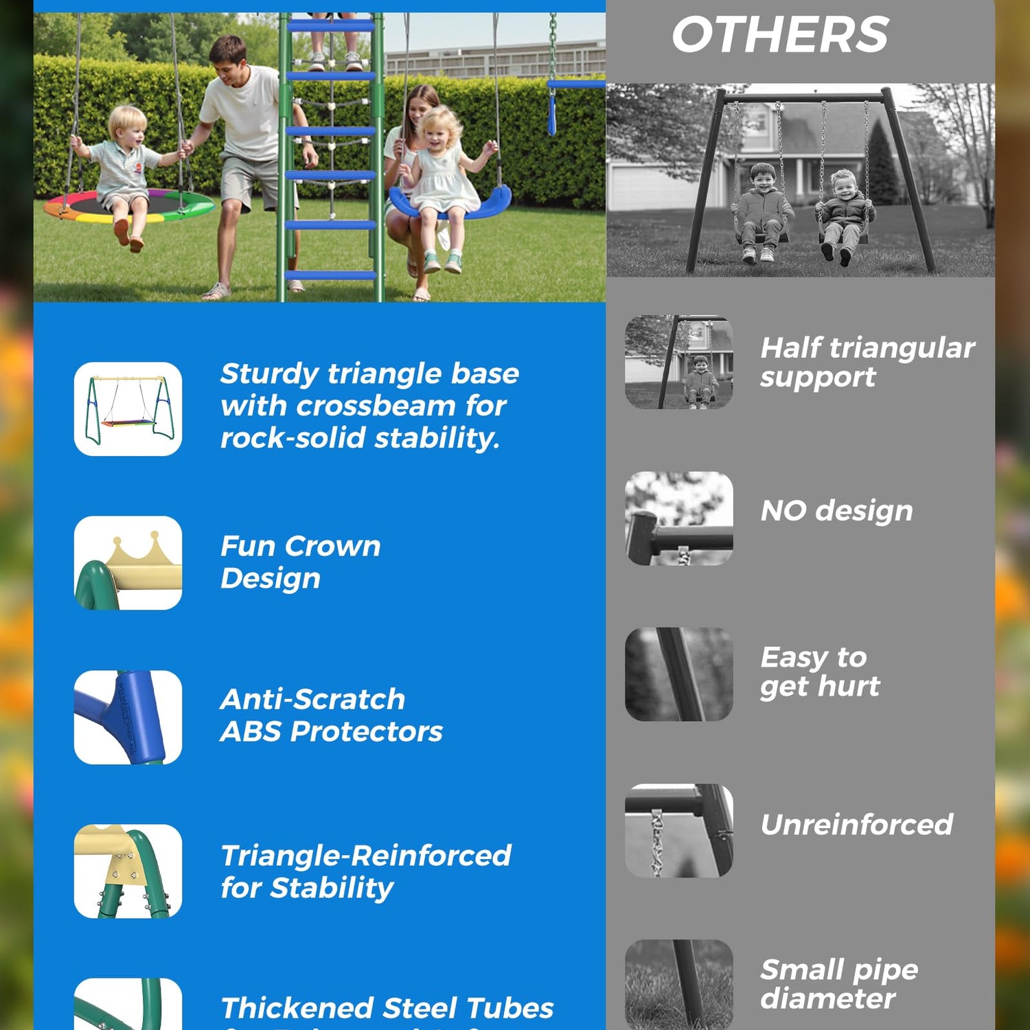 • 【Safety-First】—— Built with a sturdy A-frame design that supports up to 880 lbs, because your child's safety is our priority.