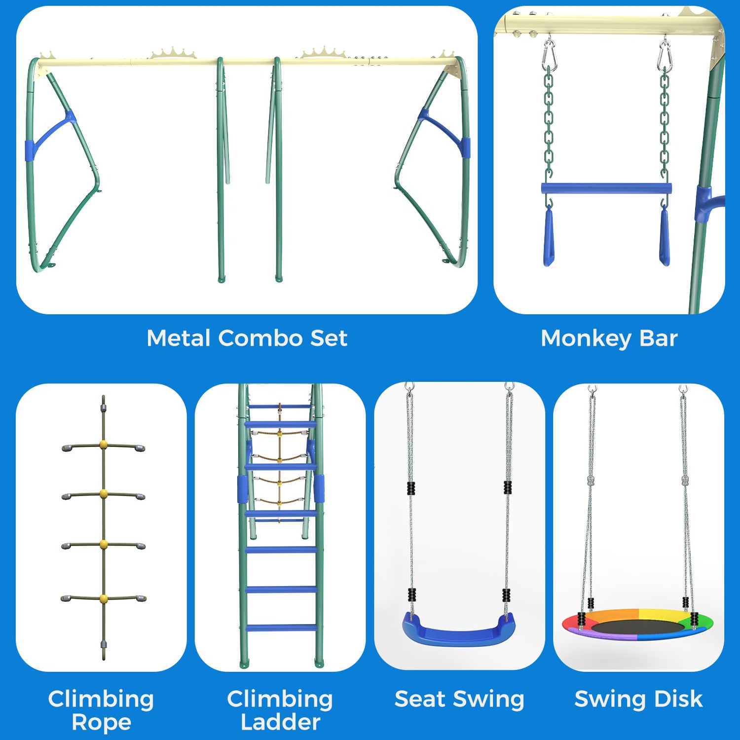 SPORTSWIN 6in1 Outdoor Metal Swing Sets for Backyard for Kids with Heavy Duty Frame (Green)