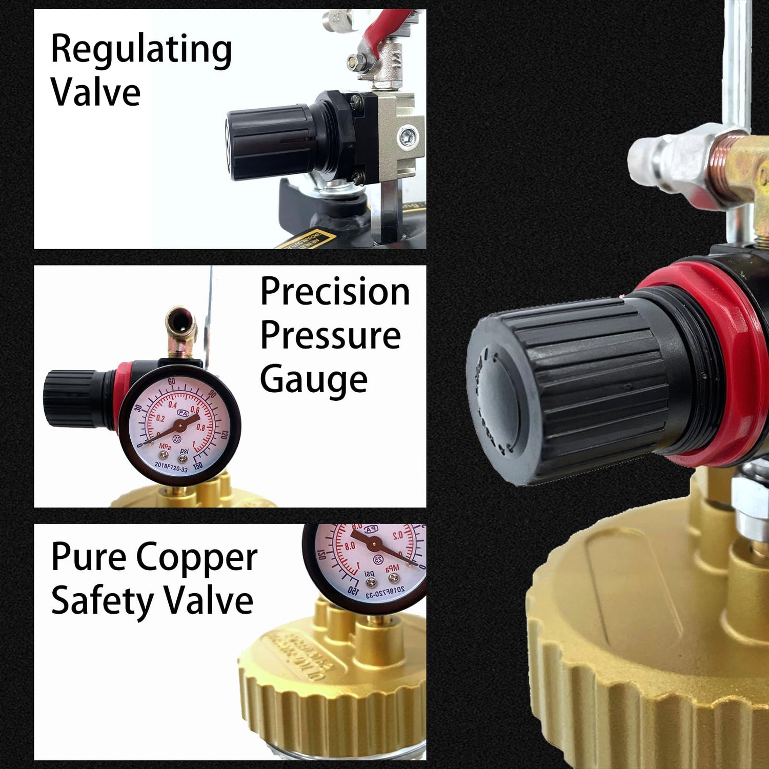 - ✨Real-Time Monitoring Adjustable Pressure✨- The YESMRO pressure pot sprayer is adjustable with a maximum of 45psi. Can tell you how much pressure is flowing through the line with the pointer on our pressure gauge at any time.When it exceeds 0.3Mpa to ensure secure operation,The safety valve of spray pressure pot for painting automatically releases pressure.