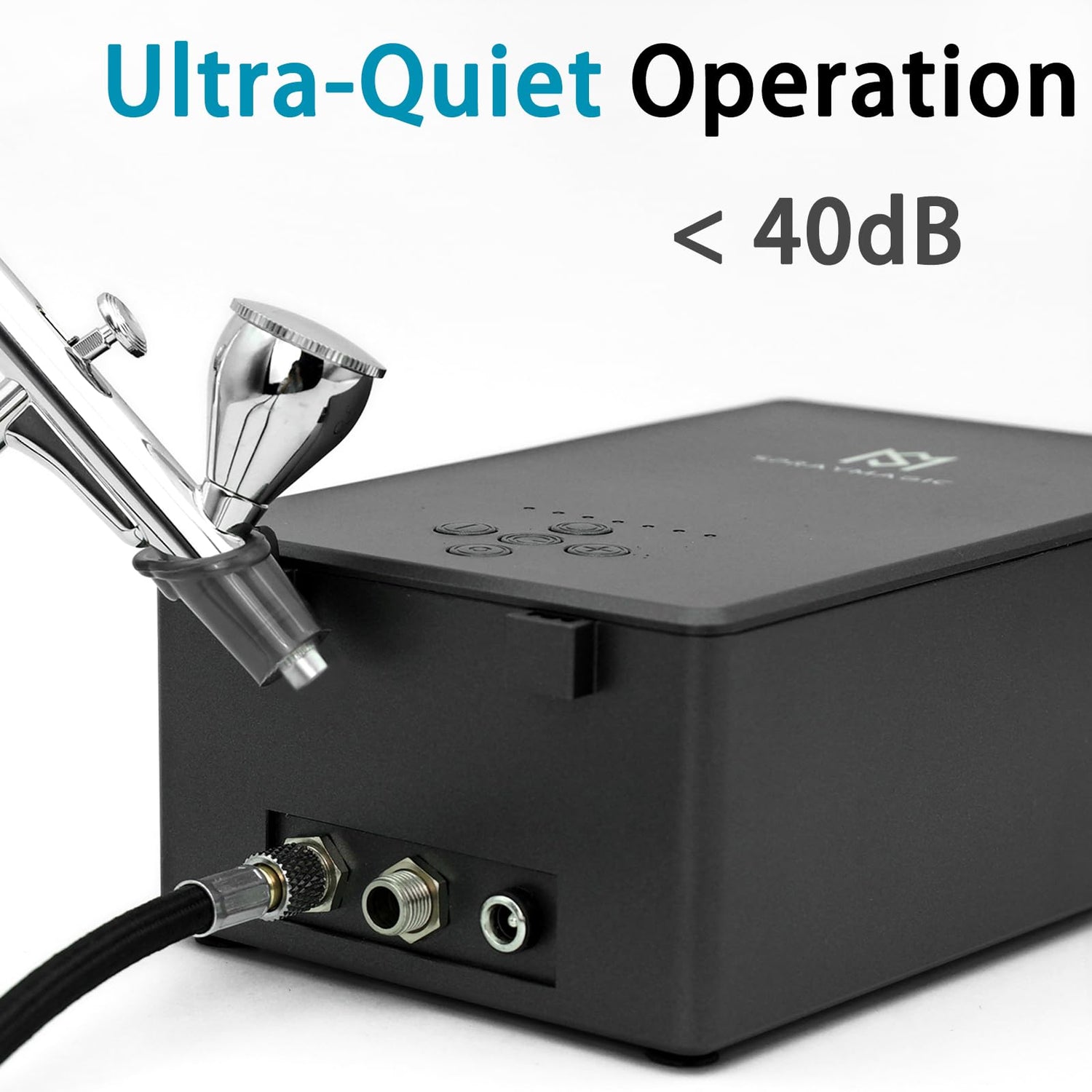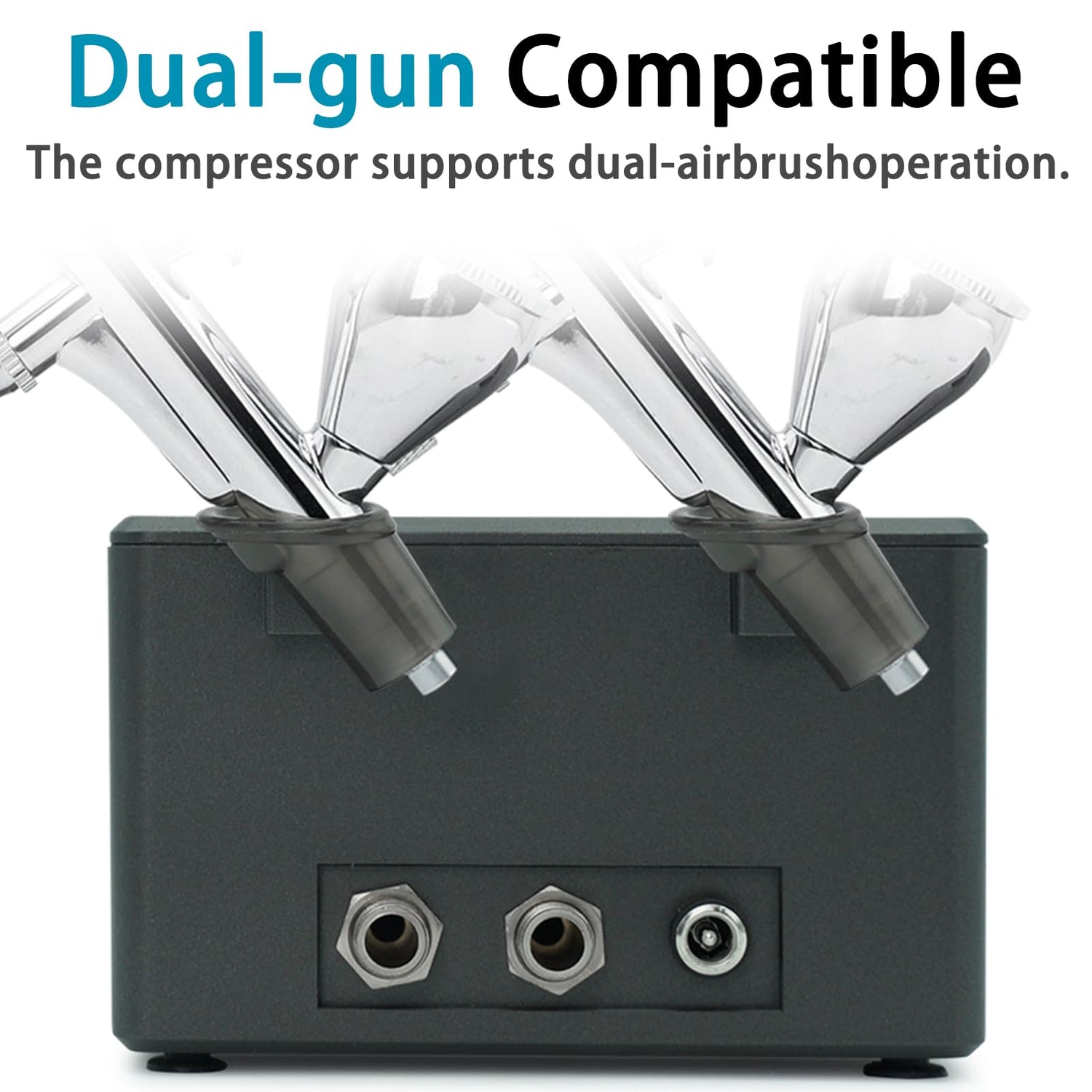 - 【Complete All-in-One Airbrush Kit】Everything you need in one box: air compressor, dual-action airbrush gun, air hose, quick connector, airbrush holder, 5CC fluid cup, cleaning tools, wrench, filter, charging plug and detailed manual. Perfect for beginners and professionals.