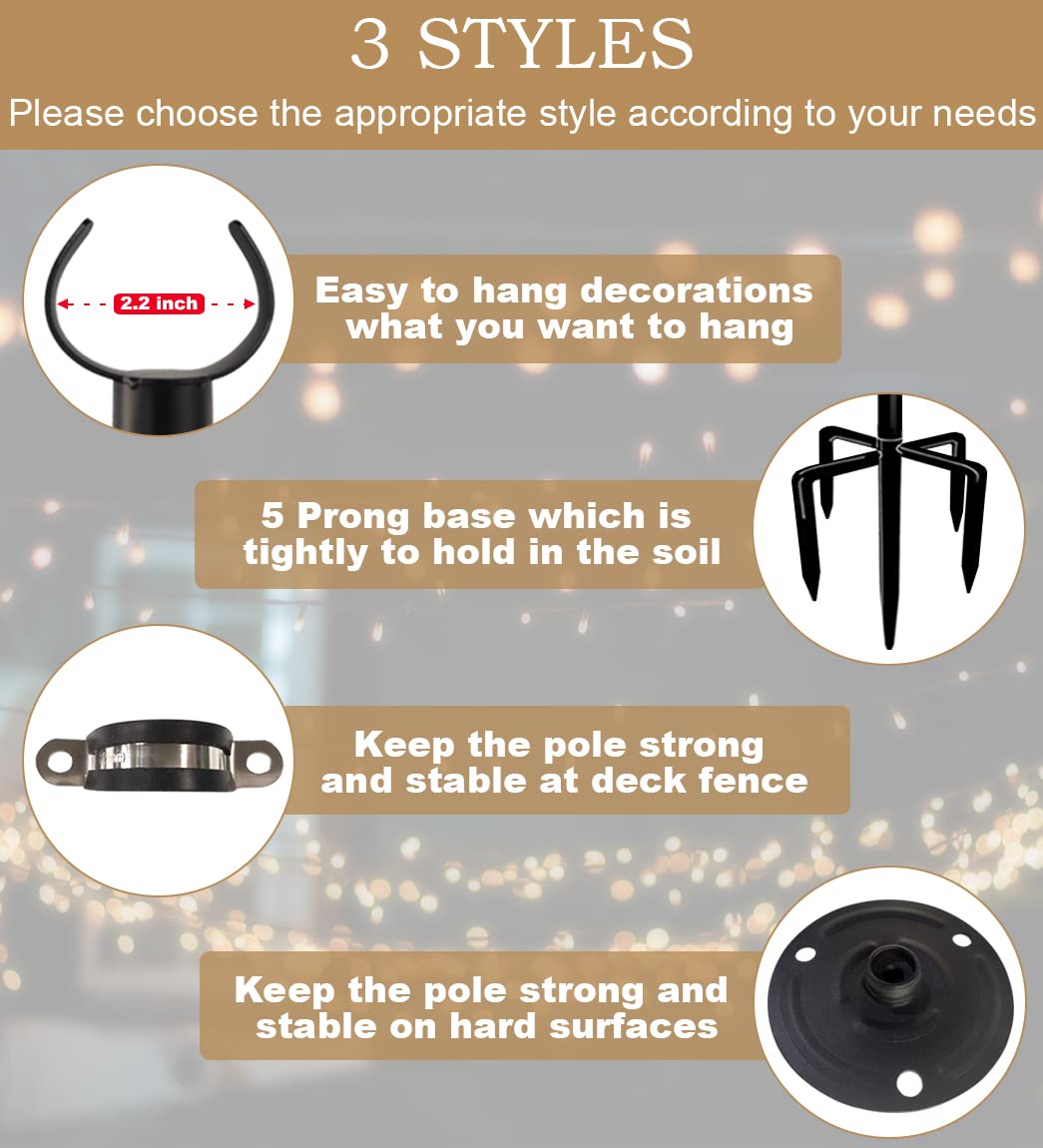 - ✦ Perfect for Applying to Hard Ground - This light poles have welded base plates with 3 holes which is suitable for the hard ground such as wood and concrete securely and without any bending or shaking from strong breezes. NOTE: If you need to fix the string lights pole on the lawn soil or fence deck, please choose another style.