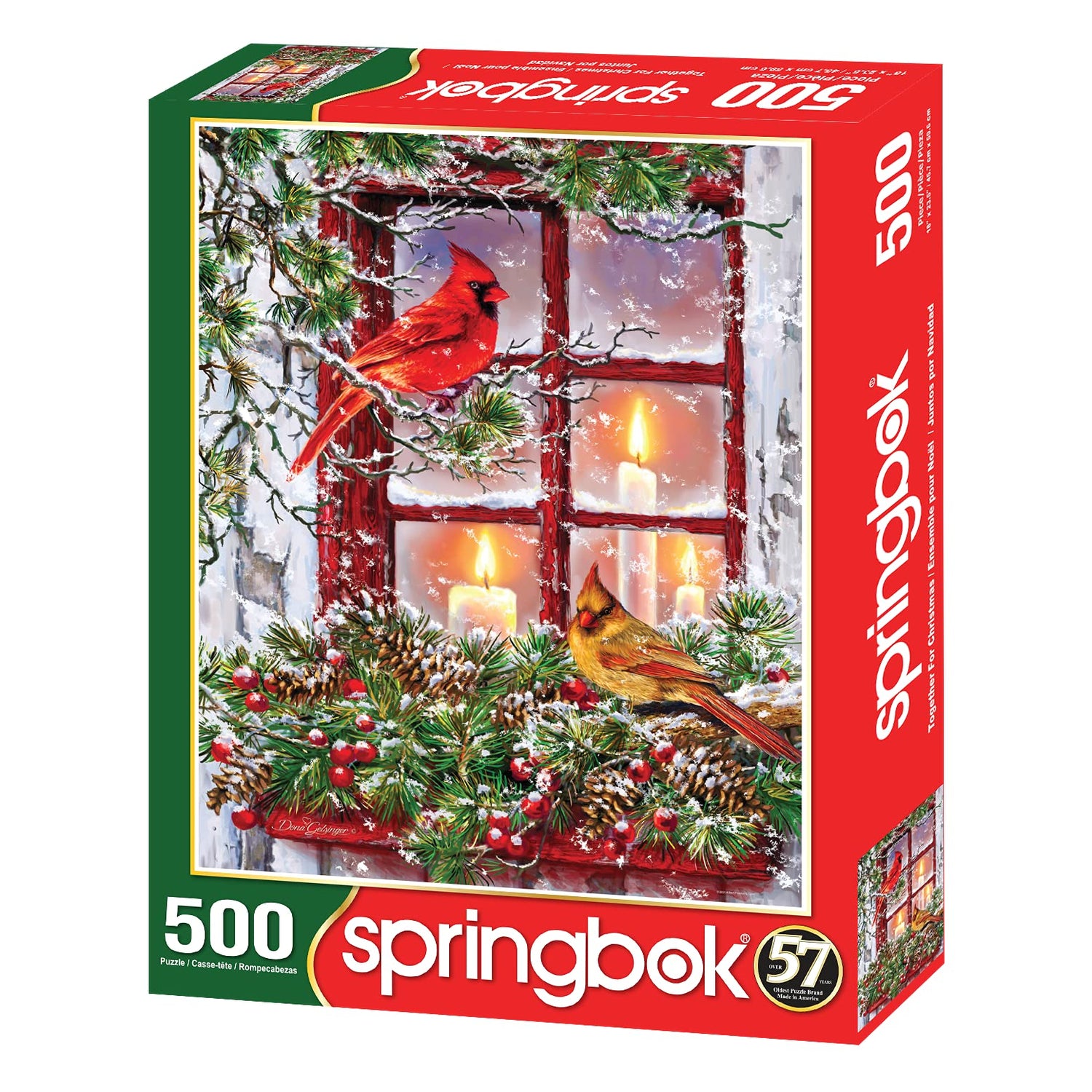 Springbok 500 Piece Jigsaw Puzzle for Adults - Together for Christmas Features a Pair of Cardinals on a Snowy Winter's Holiday Outdoor Scene Precision-Cut Puzzle Pieces Made in The USA
